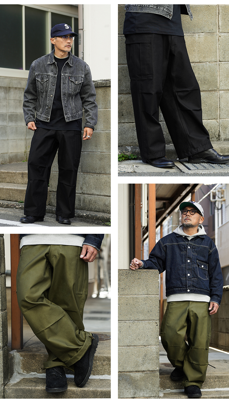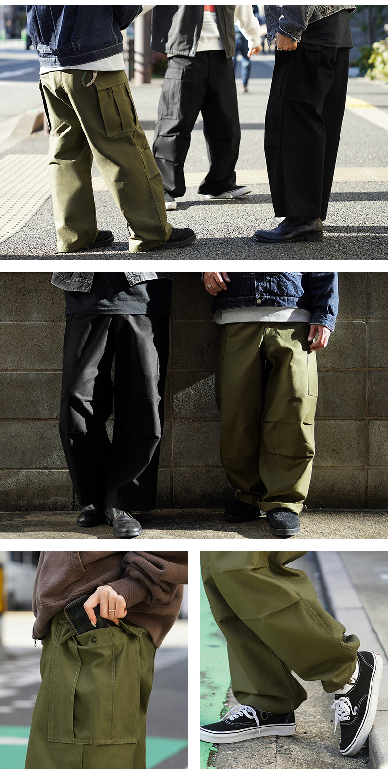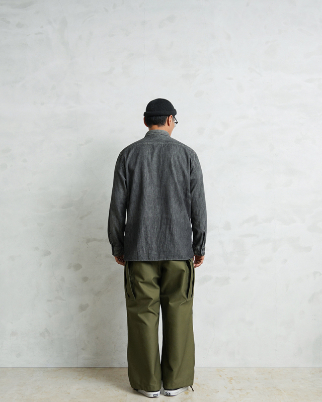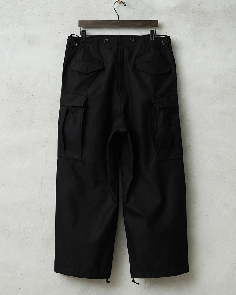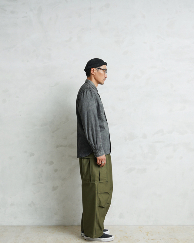 M-51パンツは、現代におけるカーゴパンツの原型として知られ、後継のM-65と並び米軍ミリタリーパンツを代表する存在。1950年代の朝鮮戦争期に採用された「M-51シリーズ」は、モッズコートとして知られるパーカーやフィールドジャケットと同型番で統一されたユニフォームラインであり、極寒地での運用も想定し、着脱式ライナーを装着できる設計が特徴です。 本作は、流通するM-51の中でもレギュラーの仕様を再現したスタンダードモデルとなります。実物が持つ圧倒的な存在感を表現するため、素材からシルエットまで徹底的にこだわり完成させました。 生地には、オリジナルで織り上げたコットンサテン生地を採用。洗い込むほどに風合いが増し、ヴィンテージさながらの経年変化を楽しめます。重量感のある生地が生む立体的なシルエットも魅力です。 サスペンダーボタンやウエストアジャスター、キルティングライナー用のボタンも再現。もちろんライナー装着も可能で、実用性と忠実な再現性を両立しています。