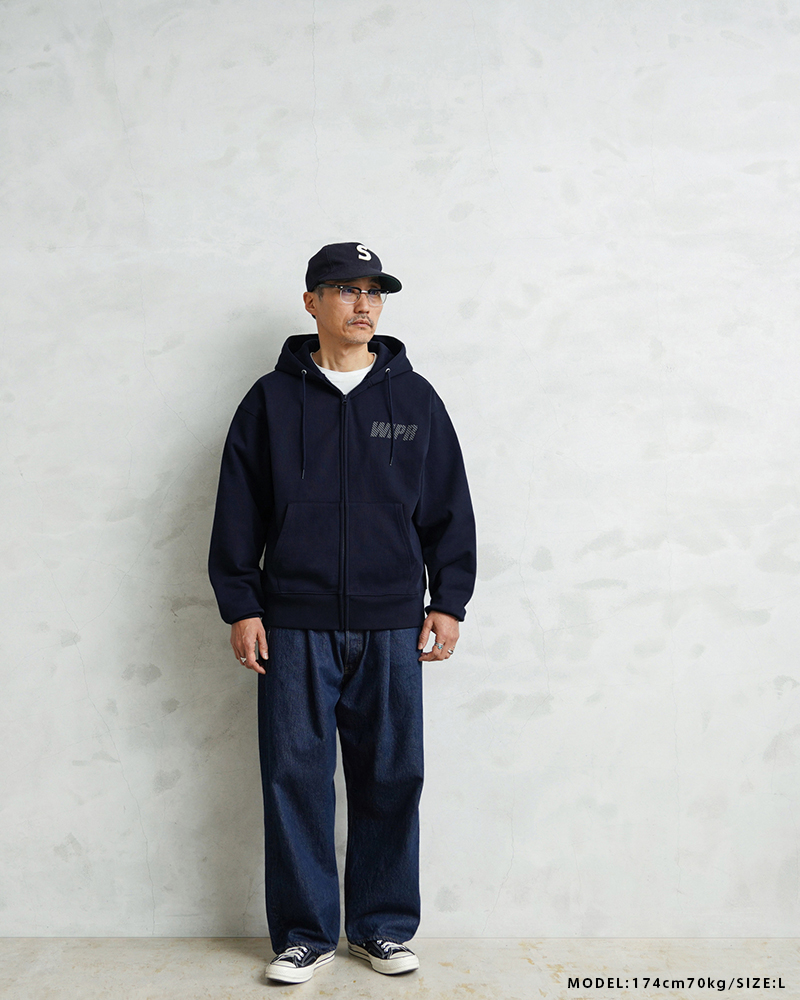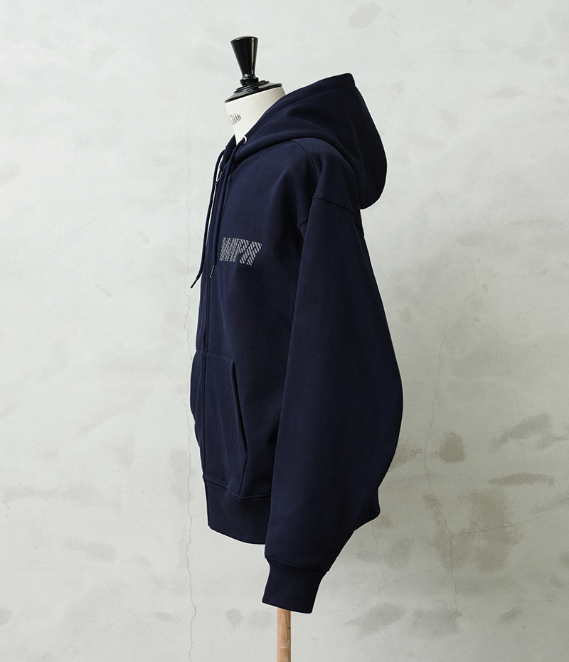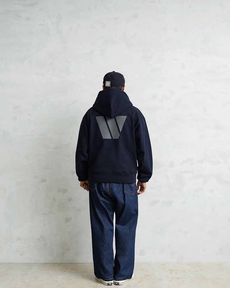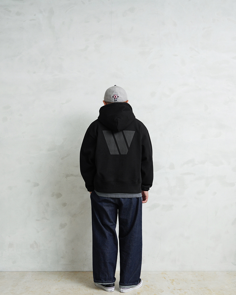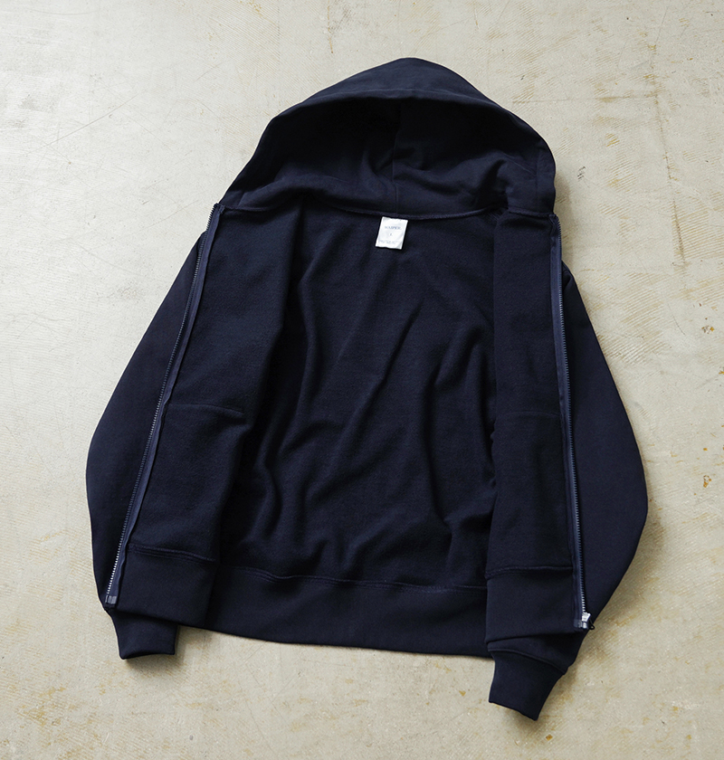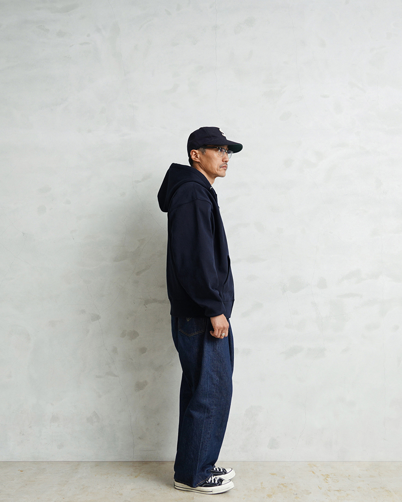 オリジナルで組み上げたボディは肉厚でハリのある13.5オンスのスウェット生地を採用。特にパーカーの印象を大きく左右する“フードの立ち”にこだわり、着用時に自然と立体感が生まれる設計に仕上げています。