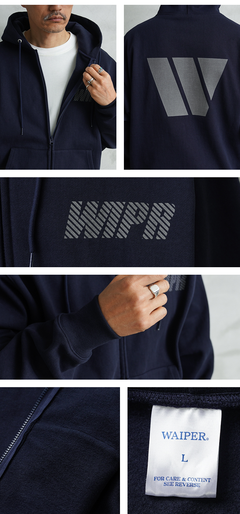 ・裏起毛製品のため、単色系のインナーを着用された場合、繊維が付着することがございますのでご注意ください