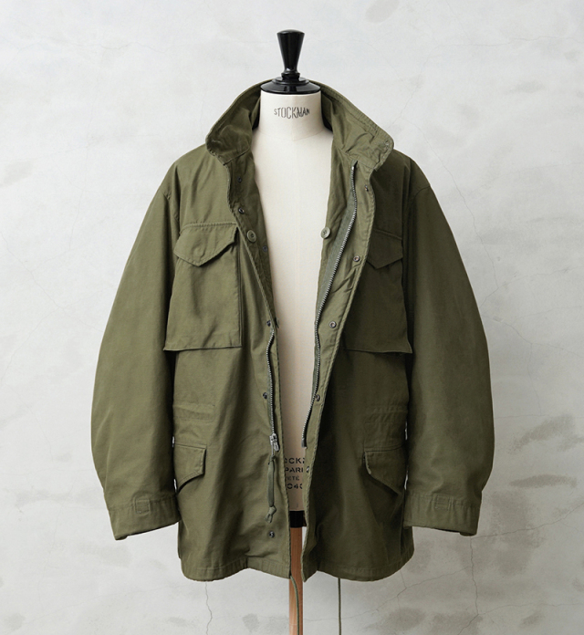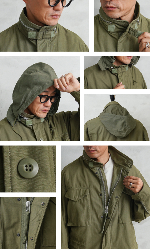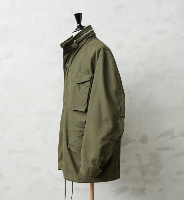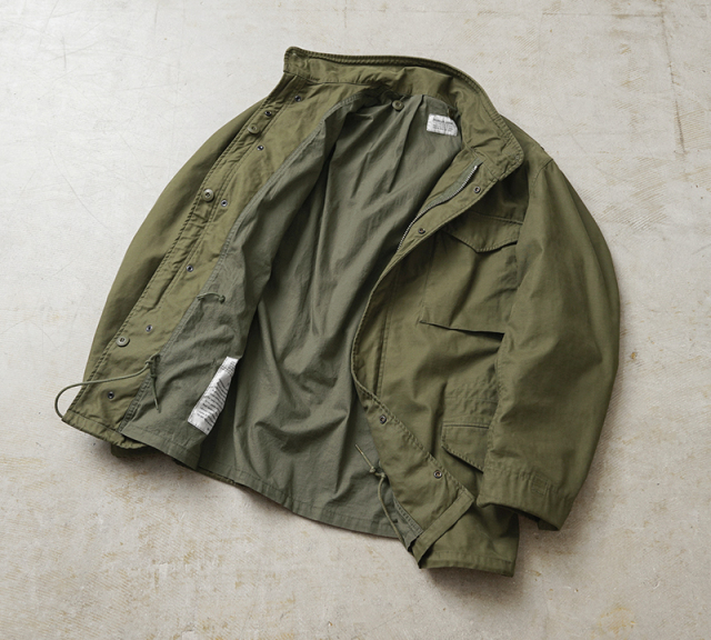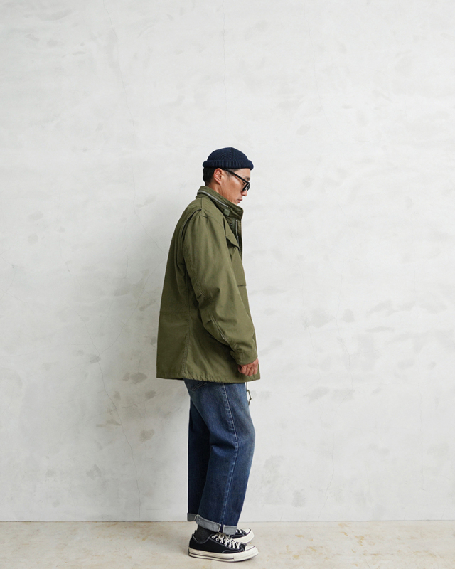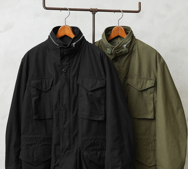 M-65は大きく分けて4つの年代に分類され、こちらはわずか一年しか採用されなかった1stモデルを再現しています。 エポレットのないシンプルなショルダー部分はカジュアルに合わせやすく、希少価値やデザインの観点からも最も支持されるモデルとなります。 現在、ヴィンテージ市場でもほとんど見られないOLIVE DRABはもちろん、使い勝手の良いBLACKの二色展開となっています。着丈はREGULARとSHORTの二種類をご用意。フィールドジャケットらしいシルエットのREGULARと、ボックス調のシルエットで着られるSHORTどちらも大変おすすめです。
