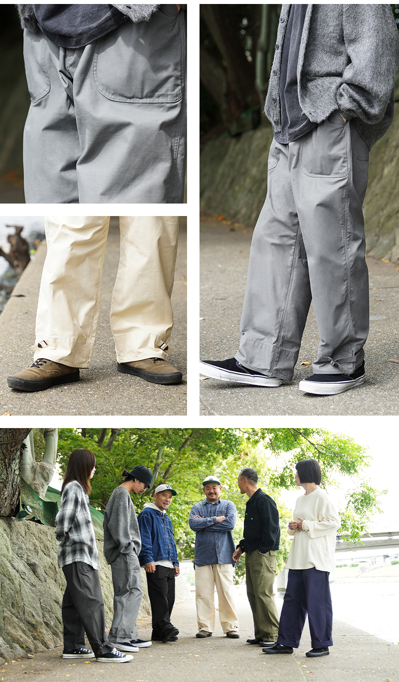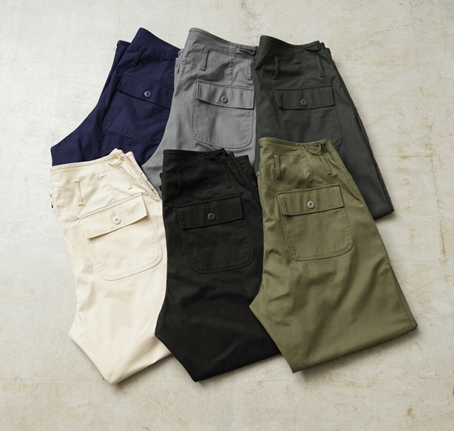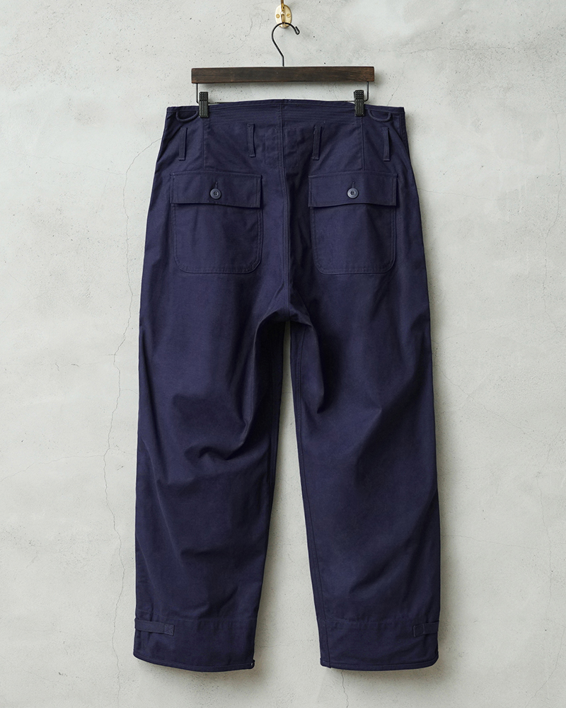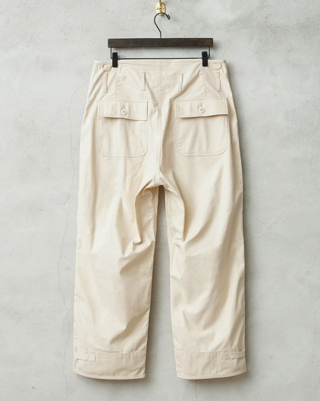 U.S. NAVY(アメリカ海軍)が艦上作業用パンツとして採用していた「A-2 デッキパンツ」を、現代のライフスタイルに合わせて大胆にアレンジ!従来の冬用仕様を見直し、最大の特徴だった裏地を省くことで、通年通して着用可能な一本へと進化させました。 裏地がない分、軽やかで快適な着心地を実現し、春夏でも気軽にコーディネートに取り入れられます。「デザインは好きだけど冬しか履けないのが残念」という声に応える、新たな選択肢です。