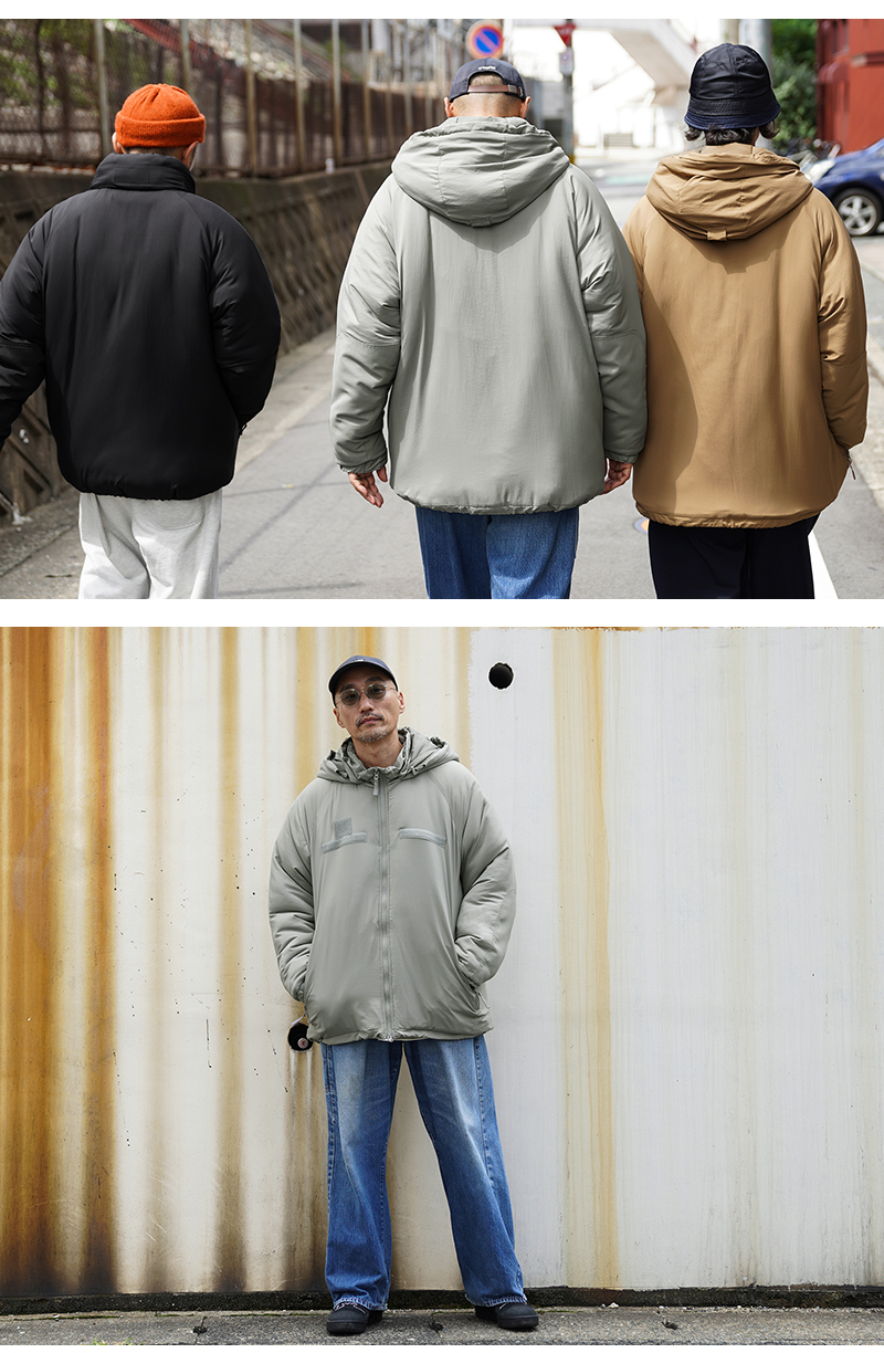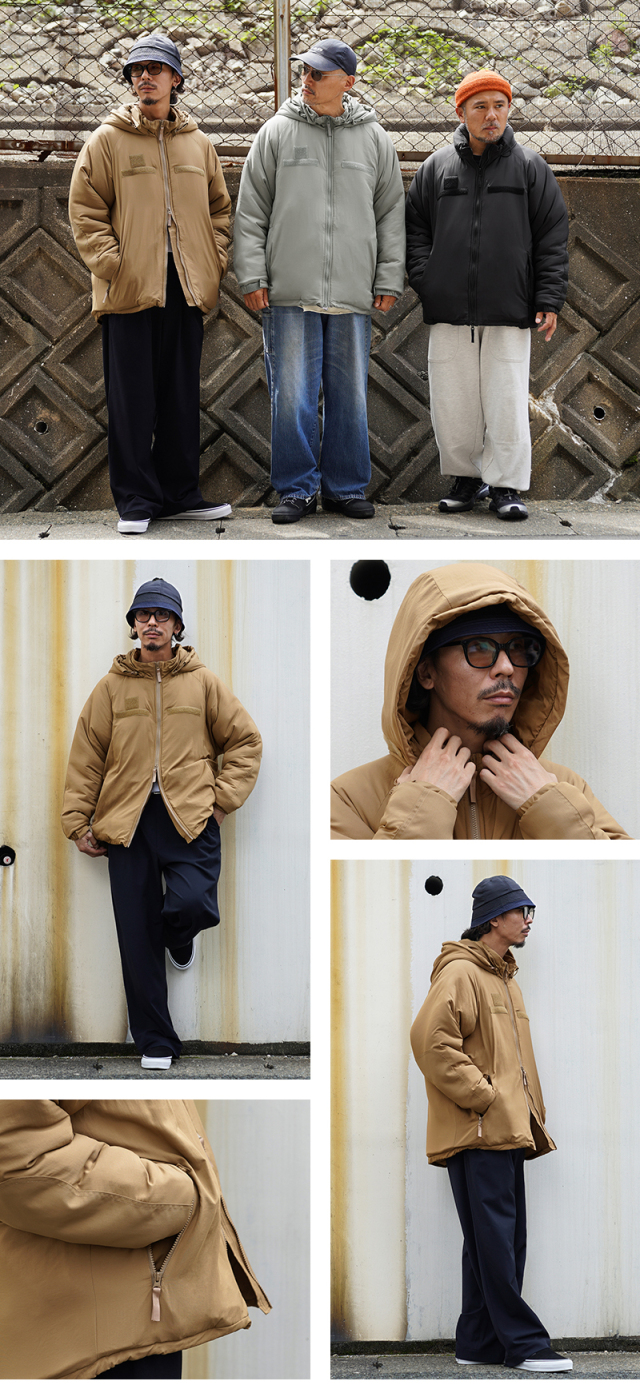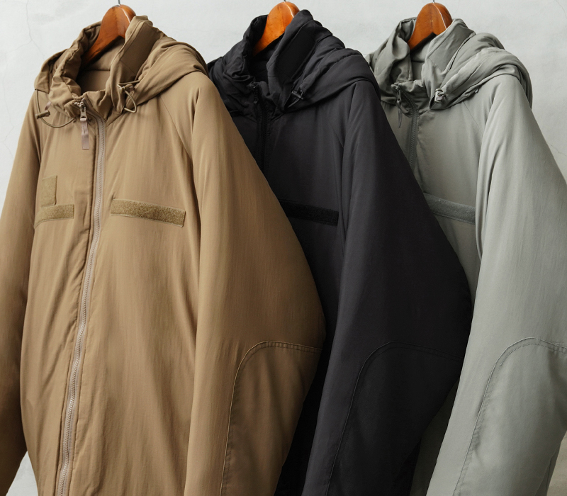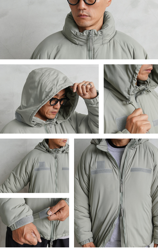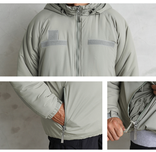 WAIPER.incから絶大な人気を誇る米軍の「Gen III Level 7 ジャケット」を再現!米軍 ECWCS 第三世代(ジェネレーション3)は7種類のトップスと5種類のボトムから構成された、様々な気候やシチュエーションに対応するレイヤリングシステムです。LEVEL 7はレイヤリング最終防寒アウターとして位置づけられています。収納式のフードや、フロントのベルクロデザイン、ポケット内蔵の裾ドローコードやエルボーパッチなどの特徴的なディテールをしっかり再現しています。中綿には高機能素材の3M THINSULATE(シンサレート)を使用。3M THINSULATEは薄くても暖かい断熱素材で、身体の熱を逃さず、しかも湿気を通す「薄く、軽く、暖かい」を実現した快適な素材です。