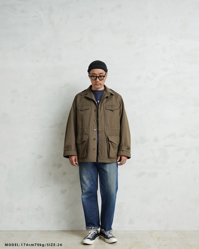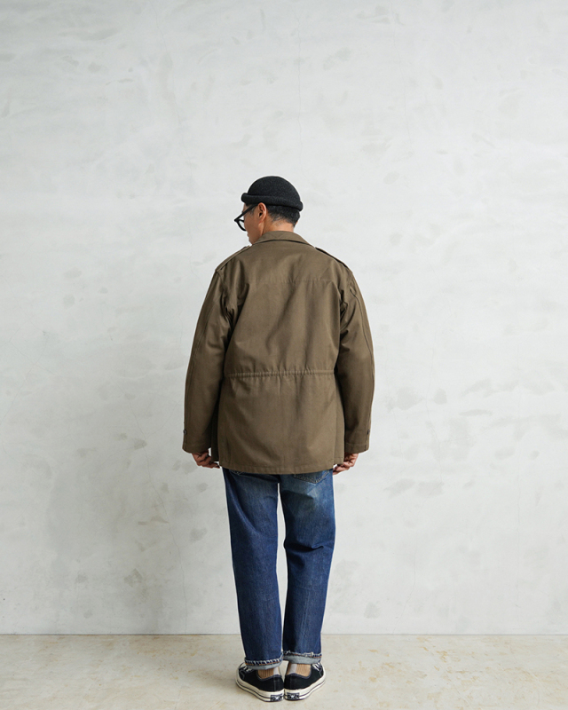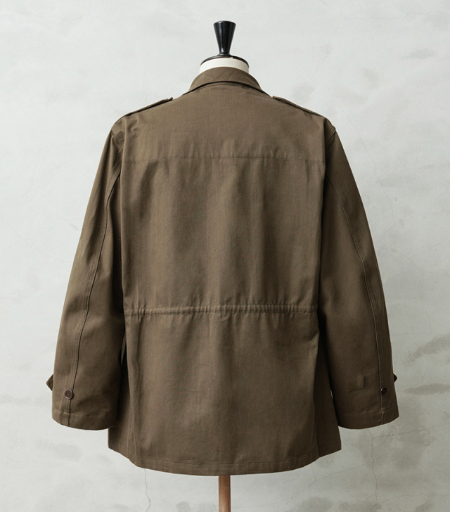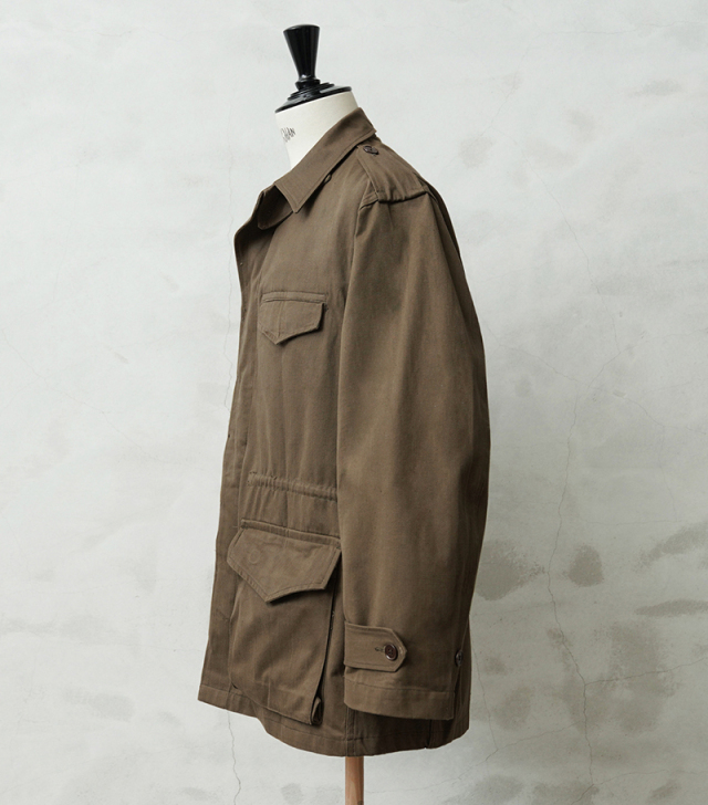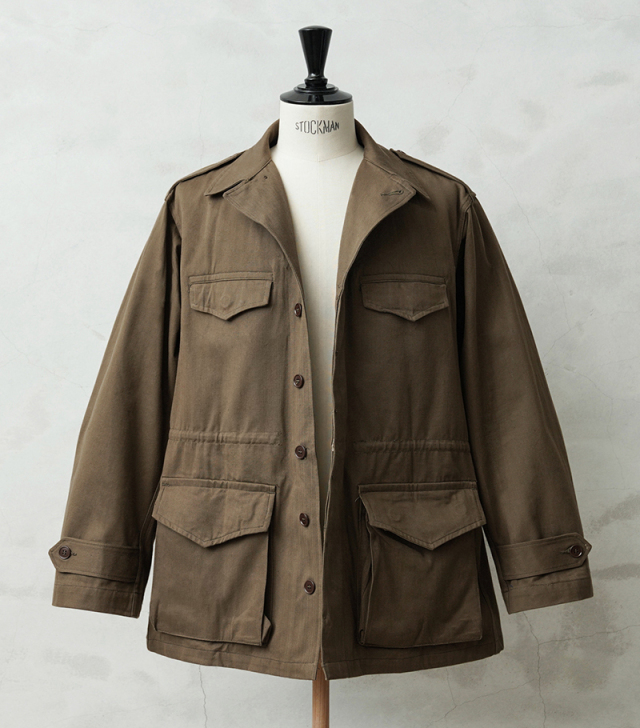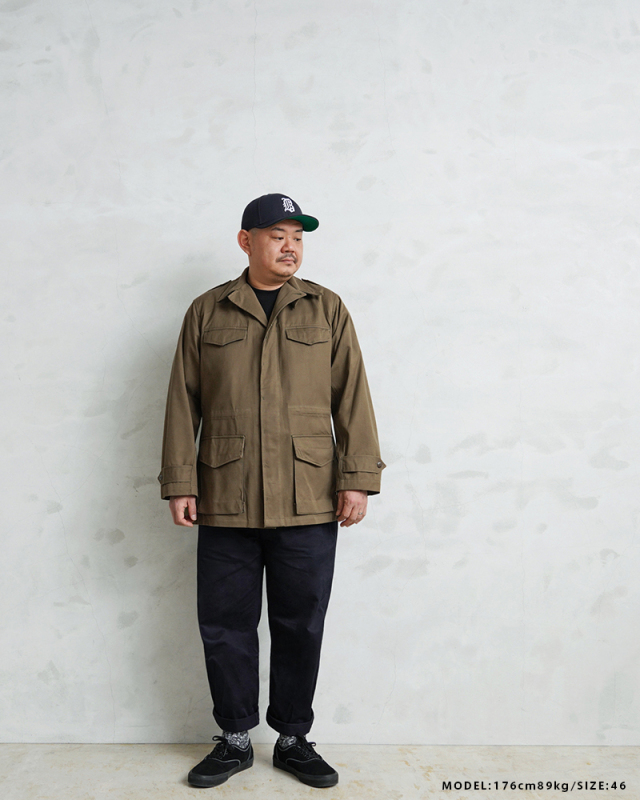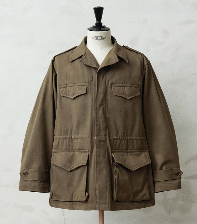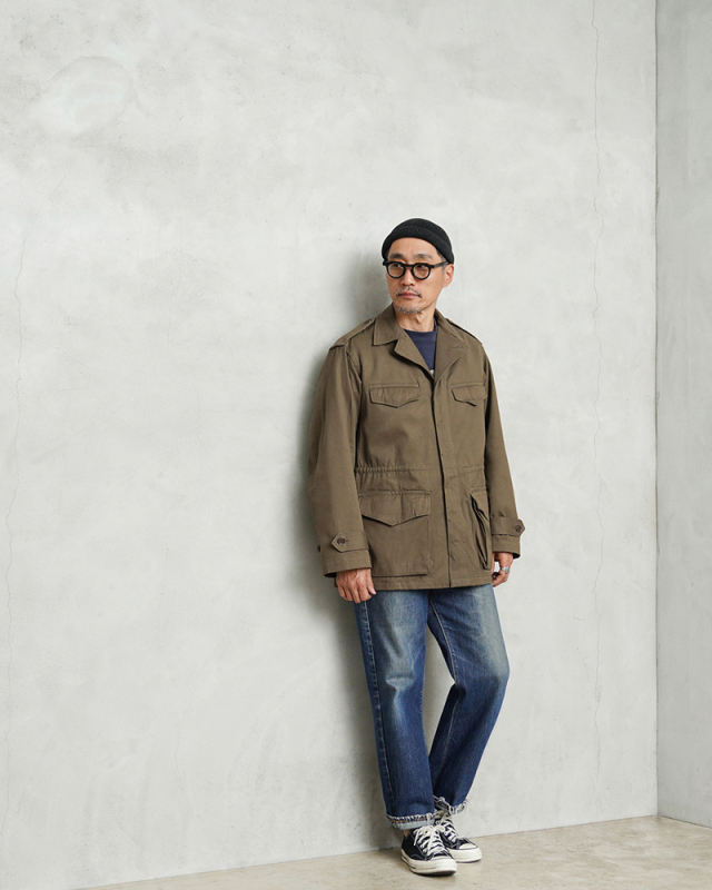 | 商品説明 | 実物 新品 デッドストック フランス軍 後期型 M-47 フィールドジャケット HBT(ヘリンボーンツイル) のご紹介です。 フランス軍で大戦後初めて開発、採用されたM-47フィールドジャケットの HBT(ヘリンボーンツイル)フィールド ジャケットです。 こちらは後期型のモデルになり、1950年代~1960年代にかけて採用された大変希少なジャケットで、フランス軍ヴィンテージ特有の味のある生地感が魅力の一着です。 肩にはエポレットが配置され、フロントは5つのボタンで留める仕様になっています。襟元には縫い付け式のストームフラップが備わっており、風の侵入を防ぐ実用的なデザインです。フロントには収納力のある4つのポケットを配置、袖口にはアジャストストラップが付いているため、フィット感の調整が可能です。さらにウエスト部分にはドローコードが施されており、シルエットを調整しながら着用できるのも魅力のひとつです。 現在なかなか手に入らないアイテムの一つに挙げられる人気のM-47は今後ますます高騰すると予想されます。 この機会に是非お見逃しなく! |