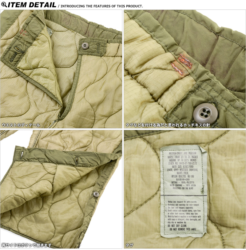 | 商品名 | 実物 米軍 M-65 フィールドパンツライナー サイドボタン USED | ||||||||||||||||||||||||||||||||||||||||||||||||||||||||