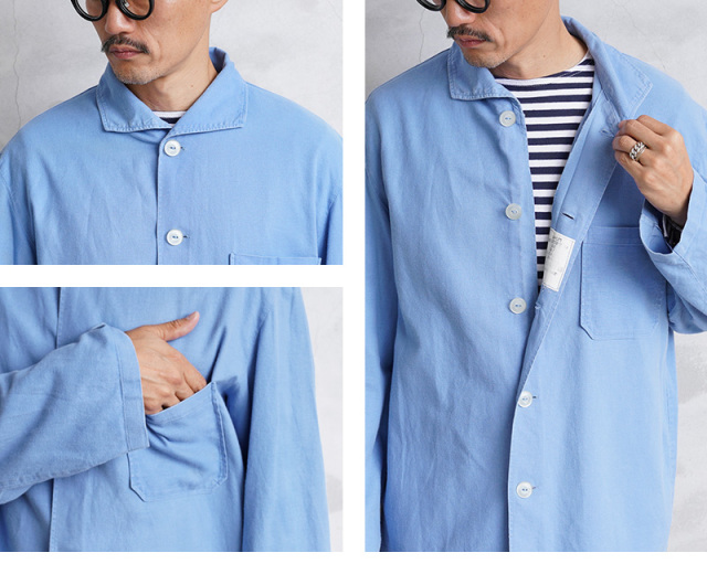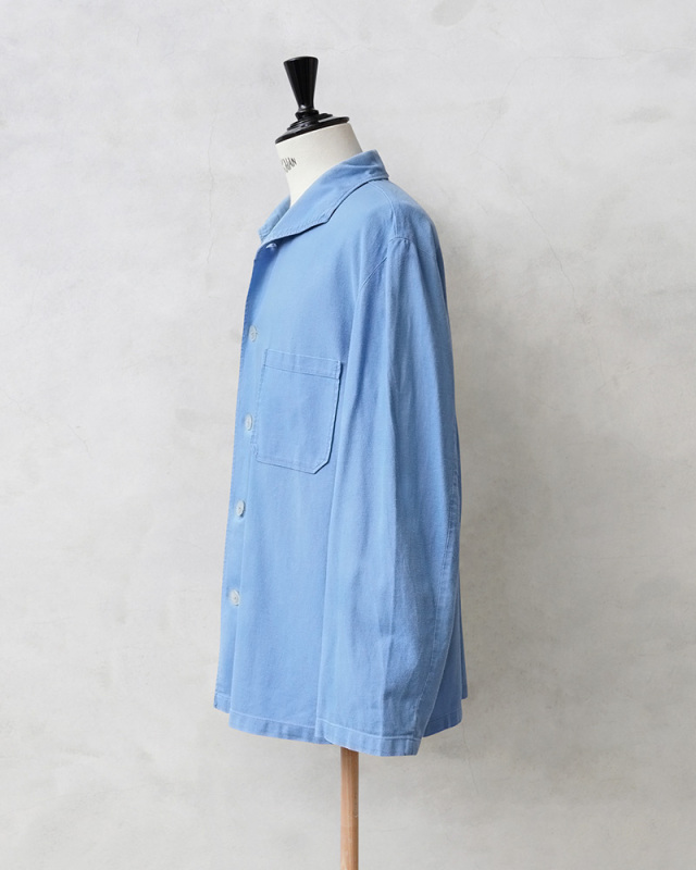 | 商品説明 | 実物 USED ドイツ軍 パジャマシャツ ライトブルーのご紹介です。 ドイツ軍においてパジャマとして着用されているアイテムです。就寝時だけでなく、宿舎などで余暇を過ごす際にも着用されており、いわばルームウェアのような存在の一着。 普通のシャツより余裕のあるシルエットで、ゆったりとした着心地となっています。イタリアンカラーのような独特なデザインの襟と、あまり軍モノらしさを感じさせない爽やかなカラーが特徴的です。5ボタン、1ポケットのシンプルなデザインで、シャツとしてはもちろん、シャツジャケットのような着方もかっこいいと思います。 ビエラ起毛のような綾織りの微起毛した素材感が肌触りの良いコットン素材で、ワークジャケットのディテールは普段着としても使いやすいデザインです。全体的に雰囲気の良いアタリの出た質感がGOOD。上品でカジュアルな雰囲気もあり男女問わず気軽に取り入れられる一押しのパジャマシャツです。 |