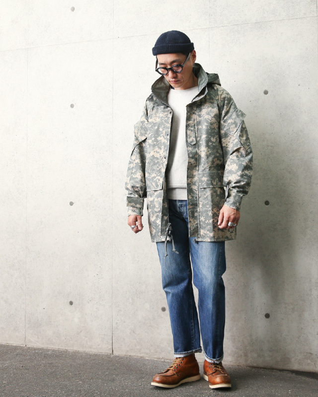 | 商品説明 | 実物 新品 デッドストック 米軍 ECWCS 2nd Gen GORE-TEX パーカ ACU(UCP) のご紹介です。 制式名称:PARKA,COLD WEATHER UNIVERSAL CAMOUFLAGE 防水性と透湿性を兼ね備えたGORE-TEX素材を採用した2nd GenerationのECWCSパーカです。 フードが襟に収納出来る「海兵隊仕様」となっており、急な天候の変化にも柔軟に対応可能。脇下のベンチレーションジップを開くことにより、パーカを着たままで体温調節を行えます。 肘の部分は補強されており、摩擦への耐性も抜群!ボディの左右に設けられたポケットは縦からも横からも手を入れられる構造に。フロントジップの横にはベルクロタイプの隠しポケットが設けられています。左右の上腕にもフラップポケットが設けられており、収納力も申し分ありません。 シェルに採用されているGORE-TEXファブリックは、雨や霧など外側からの水の侵入を防ぎつつ、身体から発せられる余分な水分を外部へと放出する機能を備えています。防風性にも優れているので、インナーにフリースを合わせることで更に保温性を高める事が可能に。夏はレインウェア、春秋は軽く羽織れるライトアウター、冬はインナーを着込むことでオールシーズンで活躍できます。デニムはもちろんカーゴパンツとの相性も良く、幅広く活躍してくれる一着。 2010年11月の調達を最後に、米国政府による新規調達は行われておらず、次第に希少性が高まっていくと思われるアイテムです。この機会にどうぞお試しください。 ECWCS(EXTENDED COLD WEATHER CLOTHING SYSTEM)とは 1980年代後半に米軍において制式採用された極寒冷気候向けのレイヤリングシステムで、拡張式寒冷地被服システムと呼ばれています。パーカの他に化繊のインナーウエアー/ライナーを活動地域の気候に合わせて組み替えるシステムとなっており、それまでのM-65パーカのような防寒性のみを追求したものから、組み合わせにより様々な気候に対応できる画期的な被服システムへと発展しました。 ※商品は同一でも製造メーカーの違いで、GORE-TEXの表記がない、ジッパーのメーカーが異なるなど仕様に違いがある場合がございます。予めご了承ください。 |