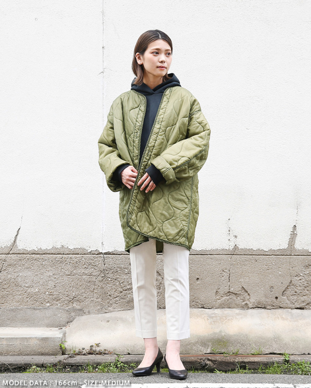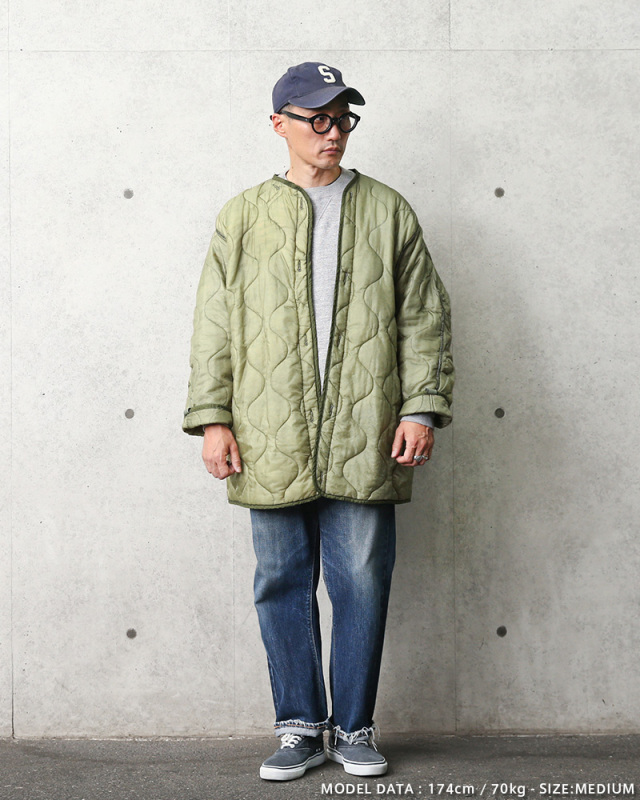 | 商品説明 | 実物 USED 米軍 M-65 モッズコート用ライナーのご紹介です。 制式名称:LINER,EXTREME COLD WEATHER,PARKA 米軍より放出されたM-65モッズコート用のキルティングライナーです。 M-65モッズコートは、このキルティングライナーを装着する事によってその防寒性を100%発揮します。 M-65モッズコートと呼ばれるフィッシュテールパーカのライナーになりますので着丈長めでゆったりシルエットで着用いただけるアイテムです。素材には軽量なナイロンが使用されおり、中綿入りのオニオンキルティングが見た目からは想像できないほど軽く保温性に優れています。 多くのファッションブランドでも、ライナーをサンプリングしたライナージャケットを多数リリースしていますし、近年ではそのデザイン性の高さ、機能性、保温性の高さからライナーをキルティングジャケットとして着用したり、ワッペンでカスタマイズしたりとリメイクのボディーとして使用されているものも多く目にします。 性別を問わずアイデア次第で様々な着こなしが出来る面白いアイテムです。 |