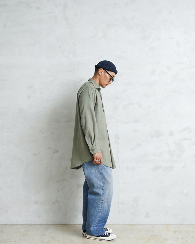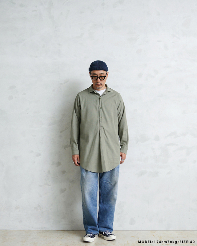 個人的には、ユ-ロの雰囲気を気軽に体験できるアイテムだと思います。グランパシャツのゆらぎ感を楽しめます。