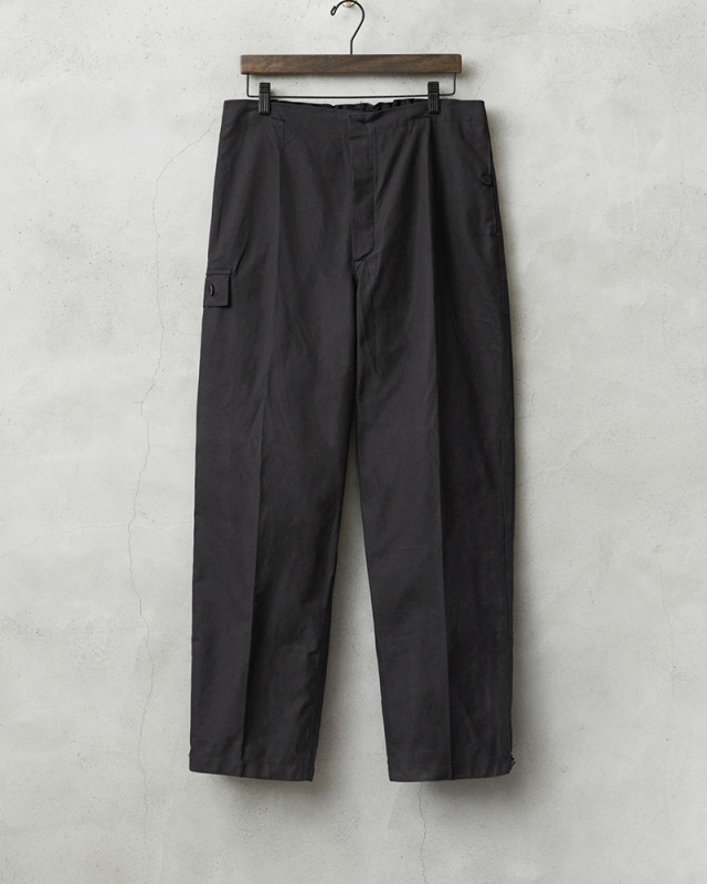 | 商品説明 | 実物 新品 デッドストック 東ドイツ軍 NVA ワーク オーバーパンツ BLACKのご紹介です。 東ドイツ軍の実物放出品のワークパンツです。 シンプルで飽きのこないデザインで1本持っておくと着回しのきくアイテムです。程よい生地の厚さで年間通して着回せます。シンプルなデザインですが、そこがまた渋いです。 「NVA」は、Nationale Volks Armee(国家人民軍)の略称で、東ドイツ軍を指しています。東西ドイツ統一後の1990年にはドイツ連邦軍に統合された軍隊です。そんな東ドイツ軍のアイテムとなれば30年以上は経過していることになりますので、それだけでも希少価値の高さがうかがえます。 本来オーバーパンツのため右側のハンドポケットが貫通式になっています。右サイドにはカーゴポケットも付属していますので、収納に困ることはありません。 フロントはボタンフライ仕様で、腰部分はゴムで伸縮する仕様です。ウエストの内側にはサスペンダーを取り付けるためのDリングが前に2つ、後ろに1つ付属していますので、対応可能なサスペンダーや様々な紐で調節して吊っても良いと思います。裾には調節できるボタンが付属しています。 年代を感じる平織りのコットン素材が着古していくと生地に良いアタリが出てくる雰囲気の良い1本です。 |