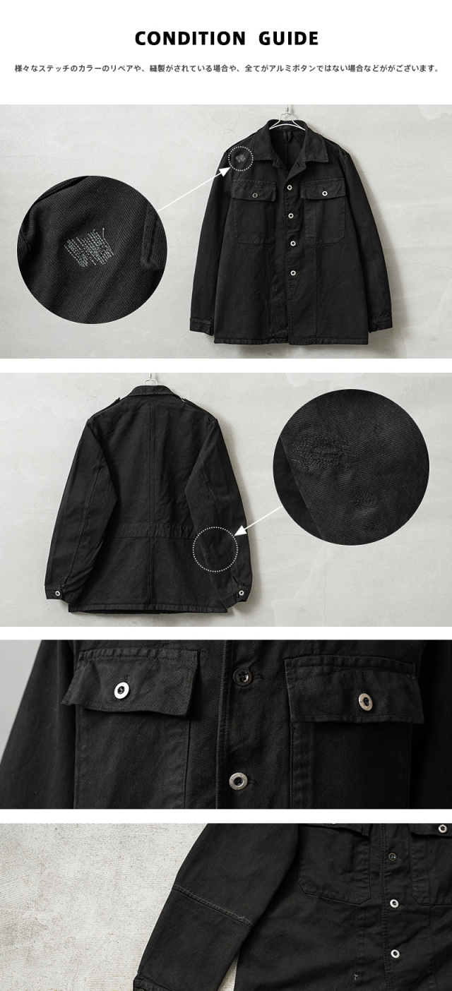 | 商品名 | 実物 USED スイス軍 前期型 デニム ワークジャケット BLACK染め | ||||||||||||||||||||