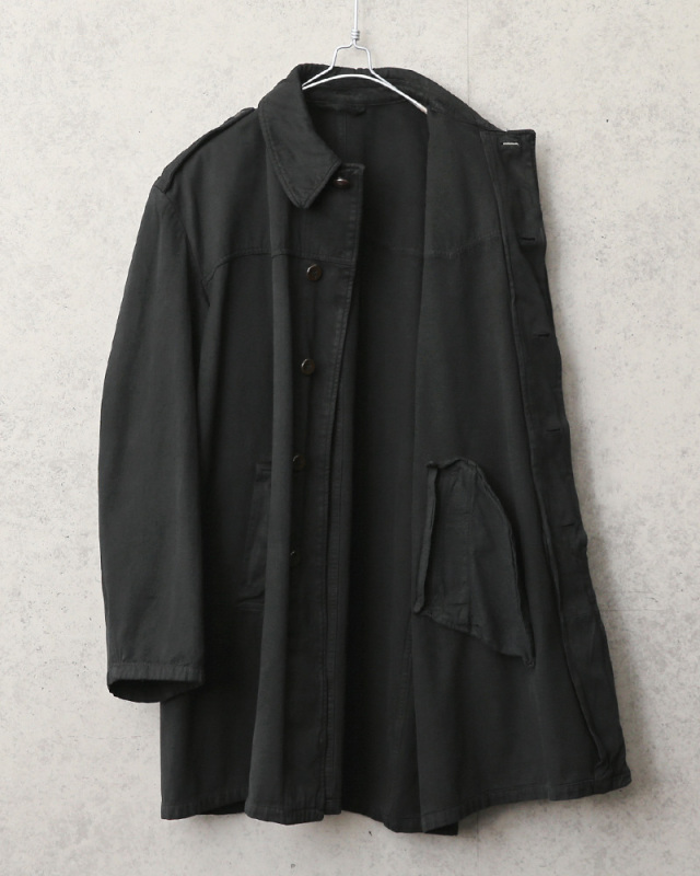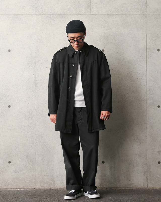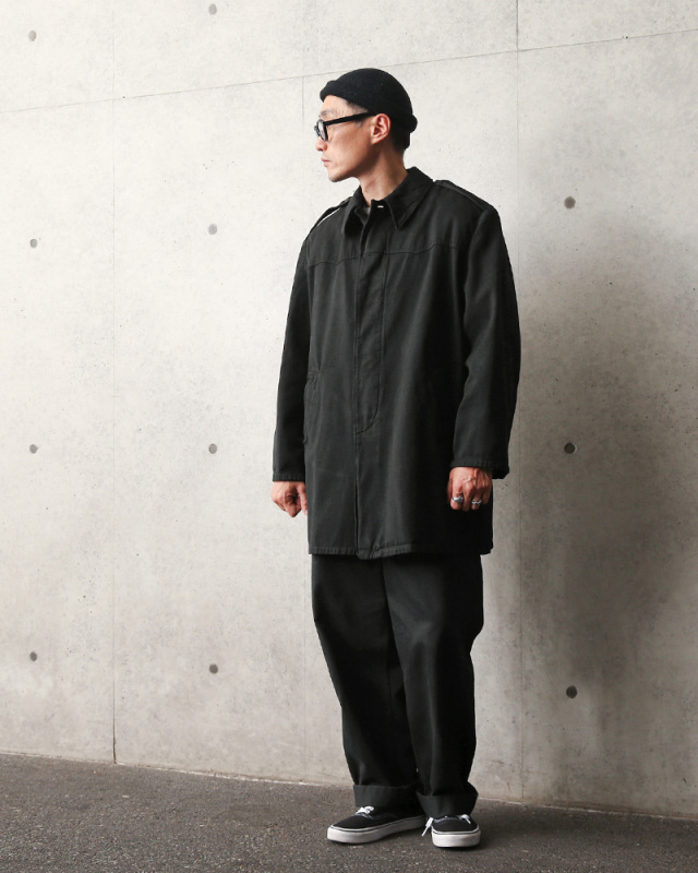 ハンガリー軍から実物放出のフィールドコートが入荷しました。 元々オリーブ色だったのですが、染め職人に丁寧にBLACK染めしていただきました。 BLACKにする事で、かなり良い雰囲気ですごく合わせやすいです。 シンプルながら生地や作りがタフで、ハンガリー軍独自の細かいディテールが詰まった1着になります。 着丈もやや長めでハーフコートのようなシルエットで、ボタンが隠れるように設計された比翼前立てで、一番上のボタンと肩のボタンは細かい装飾が施されハンガリー軍のアイコンとして親しまれています。 背中のバックヨークも後ろ姿がカッコよくて、ユーロミリタリーらしい上品な雰囲気です。 様々なボトムスに合わせやすいデザインですので重宝すると思います。 国内流通があまりない珍しいアイテムです。 |