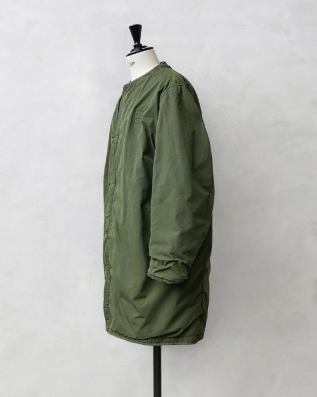 | 商品説明 | 実物 新品 デッドストック スウェーデン軍 M-59コート用 ボアライナーのご紹介です。 スウェーデン軍放出の名品「スウェーデン軍 M-59 フィールドコート」用の防寒ライナーが入荷しました! 主に1960~80年代まで使用されていたM-59フィールドコート用のライナーはユーロミリタリーの高い人気や、ライナー単体で使用されるニーズの増加に伴い、放出される数も減少の一途をたどるユーロヴィンテージの1つに数えられるアイテムです。表地にはしっかりとした素材感のコットンポリが使用され、裏地にはアクリルボアが使用されています。厚手のアクリルボアが使用されていることで、とても暖かくアウターとしても着用可能です。 裏返してアクリルボアを表にして着用しても見た目の雰囲気が良く、いい感じの着こなしができるスウェーデン軍らしい無駄の無いミニマルなデザイン。そのデザイン性と抜群の防寒性でこの1枚で十分過ぎるぐらい暖かく、アウターと呼んでもいいぐらいのアイテムです。 スウェーデン独特のグリーンカラーが品の良さも感じさせるコートライナーです。インナーの合わせ方や、袖などをロールアップしたりと着こなし方で表情が変わる、ミリタリーアイテムの中でも群を抜いてオシャレなアイテムです。スウェーデン軍アイテムは価格の高騰も激しいのでお早めに! |