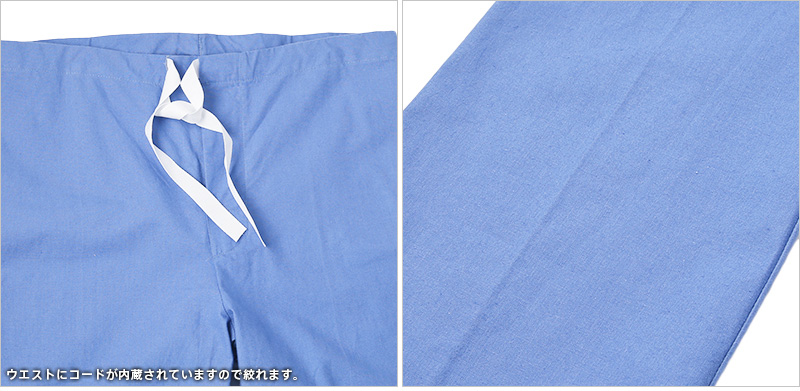 パンツは前あきでボタンなし、ウェストは紐で調節できます。