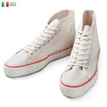 このWARRIORというメーカーは1920年代に中国上海で創業した老舗シューズメーカーで、 それがなぜか海を越えてイタリア海軍にて使用されたというなんともミステリアスなスニーカーです。 WARRIOR(中国名 回力:フイリー )は現在、ヨーロッパ、欧米で人気のスニーカーブランドでもあります。 どこかで見たことあるディテールでブート感満載ないわゆる某CTインスパイアな形ですが、 ぽってりとしたトゥのボリューム感とサイドのステッチワークがなかなかいい味です。 細身のコットンレースもヴィンテージ感があっていい感じ!オーバーサイズをでか履きしてもよさげです。 極めつけの漢字ロゴ!ここが海外受けするポイントだと思います笑 |