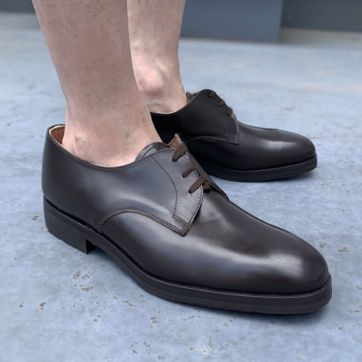 今回の入荷が44サイズのみです。わたしは普段、26.5~27cm程度のスニーカーを着用しているのでやはり大きく感じました… (個人差がございますので、あくまでも参考でお願いします。) シンプルなプレーントゥのシューズです。 カジュアルなブラウンレザーでソールもラバーなので普段履きにぴったりなルックスです。 スラックスはもちろん、デニムなどに合わせても相性抜群ですよ! がしがし履けそうです! デッドストックでプライスも比較的リーズナブルなので、サイズが合う方にぜひオススメです! |