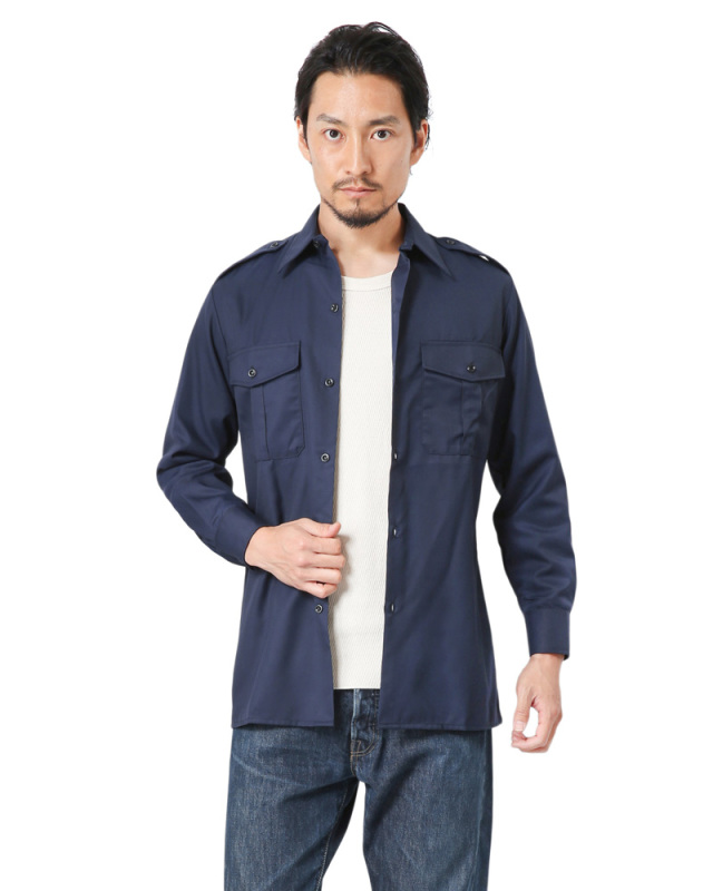 | 商品説明 | 実物 新品 フランス軍 FRENCH NAVY COLOR ドレスシャツのご紹介です。 落ち着きのあるNAVYカラーの上品なドレスシャツが入荷しました。両肩にはエポレット、両胸部分にはボタン開閉のフラップポケット付き。裾裏の表記タグが味のある雰囲気を出しておりデザインのアクセントになっています。 ボタンは全てブラックで統一され、背面ウエスト部分はシェイプされたデザインがより一層シルエット良く仕上がっています。 シンプルなデザインで、1枚持っておくと重宝するアイテムは、カジュアルから少しきれいめなコーディネートまで、幅広く活躍してくれます。 |