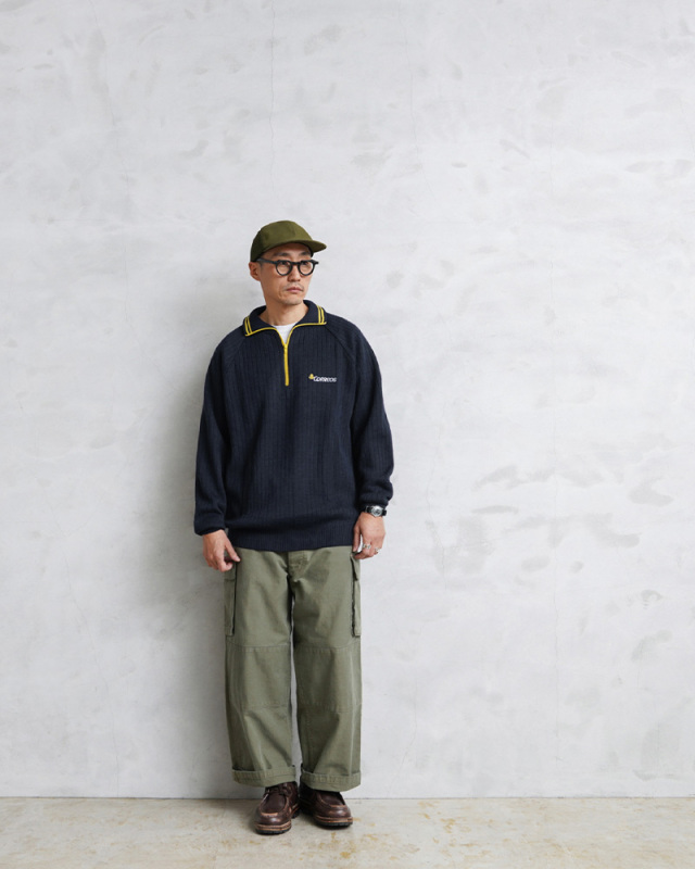 | 商品説明 | 実物 新品 デッドストック スペイン Correos ジッパー セーターのご紹介です。 スペインの郵便事業を担うCorreos(コレオス)で配達員が実際に使用するセーターがデッドストックで入荷! 胸辺りまでのイエローのハーフジップが特徴的な1枚で、首元まで閉めることでスタンドカラーで使用でき、襟の内側にもイエローのラインが2本入っていますので、スポーティーでカジュアルな雰囲気でも着れる1枚です。 腹部には手を入れる事ができるように作られたマフポケットも備わっていたりと、かなり作りまこれたセーターです。左胸には金管楽器に王冠があしらわれたロゴにCorreosの刺繍が胸にワンポインでデザインされています。 袖の部分が首回りから斜めに縫い付けられたラグランスリーブが採用されていますので、肩のポジションが定まっていないので、ドロップショルダーと同じように肩幅を気にせずに性別を問わず着用していただけます。 ヨーロッパ各国の軍のミリタリーウェアや制服などを製造しているメーカーが製造した上質なセーターです。肌触りも良く、ウールのゴワつきもなく、ネイビーとイエローのコントラストの効いた配色センスが抜群です! 手に入れたくてもなかなか手に入らない希少なセーターです。 |