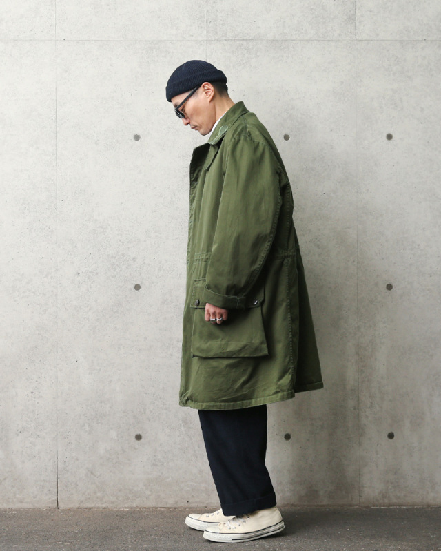 | 商品説明 | 実物 USED スウェーデン軍 M-59 フィールドコート のご紹介です。 昨今、ユーロミリタリーで、もはやメインストリームになりつつあろうかと言うスウェーデン軍。 放出量が少ない事で中々、陽の目を浴びておりませんでしたが、昨年ブレイクしたM-90は多くのミリタリーファンには記憶に新しいところです。 今回ご紹介するのは、M-90の前身モデルとなる主に60年代~80年代まで使われていたM-59フィールドコートです。はっきり言って名品です! スウェーデン軍らしく、無駄の無いミニマルなデザインで、ベーシックなステンカラータイプでありながらも、フロントのフラップ付きの大きなポケットに存在感があります。 広い身幅による秀逸なAラインは、今っぽさを感じなくも無いですが、ただオーバーシルエットを出そうと外見のみを意識したブランドデザインとは一線を画します。 ライナーを装着できる仕様となっており、快適に動くという目的に沿うよう、ゆとりを持たせている為、そもそものオーバーサイズにするベクトルが違います。 求められる生地の耐久性や縫製の頑丈さ、それらの要素が一体となり実現するAラインには必然的に機能美が宿っています。 とにかく放出量が少なく、ユーロミリタリーの中でもスウェーデン軍の高騰が激しく今後値段が下がることはまずないです! 今のうちに押さえておいた方が良いアイテムだと思います! |