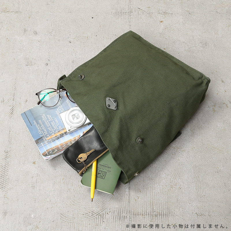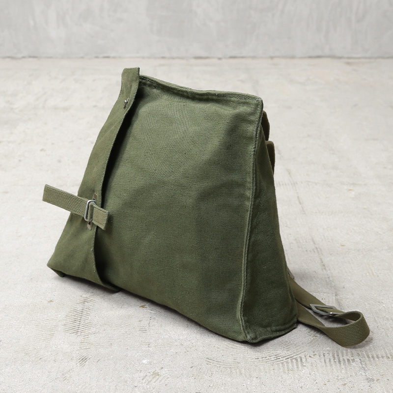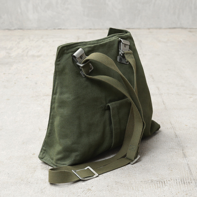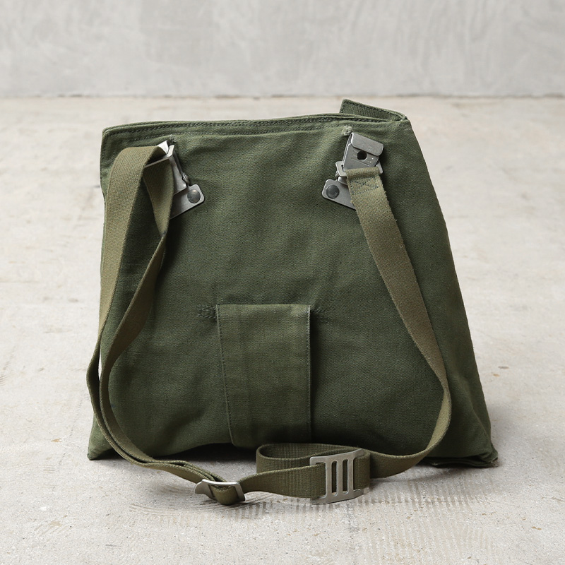 立体的でアシンメトリーな形状が特徴のスウェーデン軍のM-51ガスマスクショルダーです。風合いのある、コットン素材と深いオリーブカラーで落ち着きのある上品な印象。また取り外し可能なストラップは装着する場所を変えることで、開口部の向きを変えて使用することが可能です。本来はガスマスクバッグですが、適度なサイズ感のショルダーバッグとしてお使いいただけます。丈夫かつシンプルなデザインはデイリーに取り入れたくなるアイテムです。