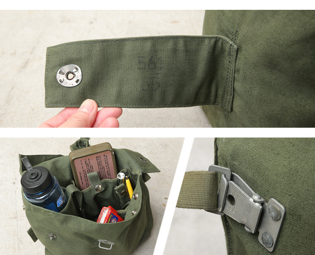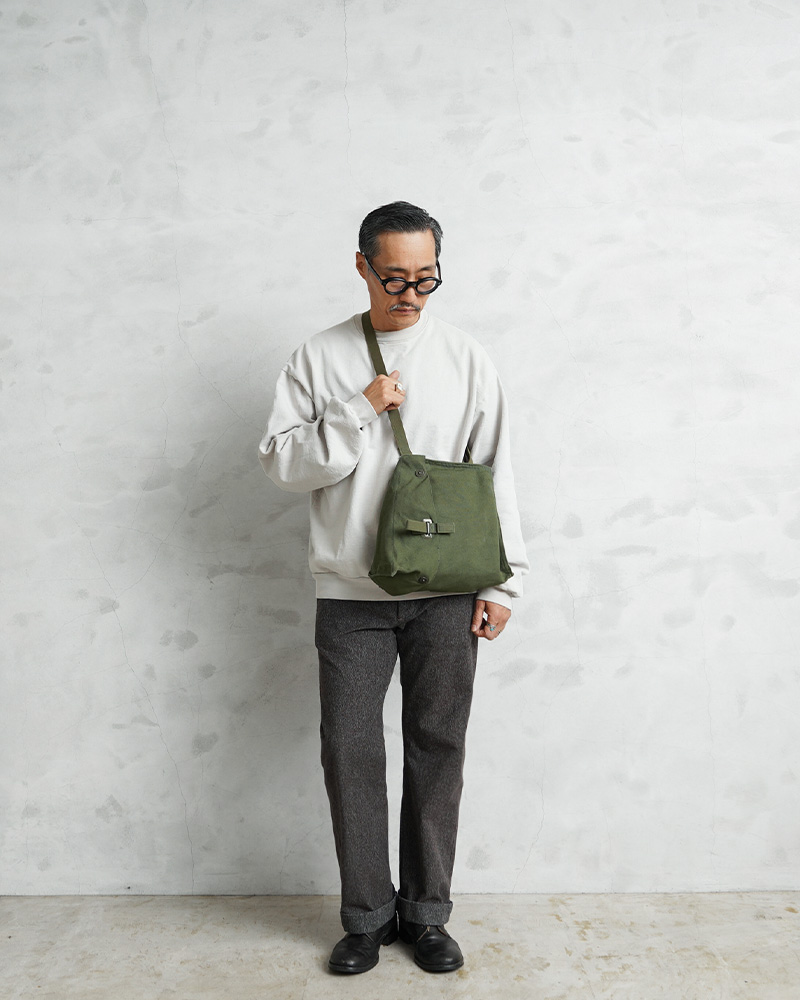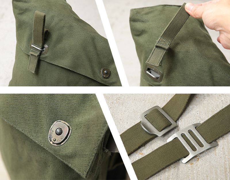 立体的でアシンメトリーな形状が特徴のスウェーデン軍のM-51ガスマスクショルダーです。 風合いのある、コットン素材と深いオリーブカラーで落ち着きのある上品な印象。また取り外し可能なストラップは装着する場所を変えることで、開口部の向きを変えて使用することが可能です。 本来はガスマスクバッグですが、適度なサイズ感のショルダーバッグとしてお使いいただけます。 丈夫かつシンプルなデザインはデイリーに取り入れたくなるアイテムです。 ※撮影に使用した小物は付属しません。 |