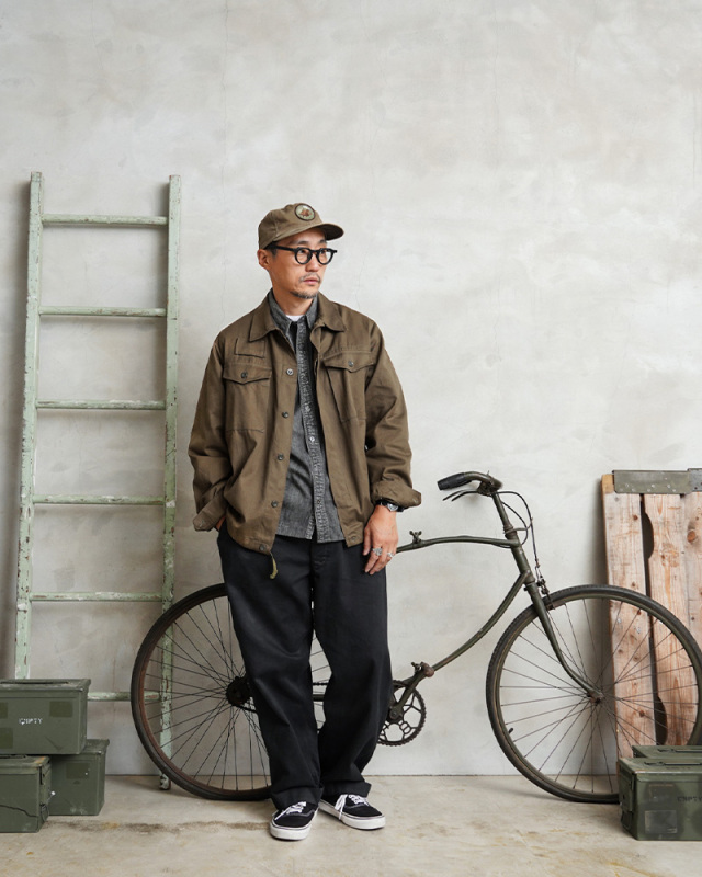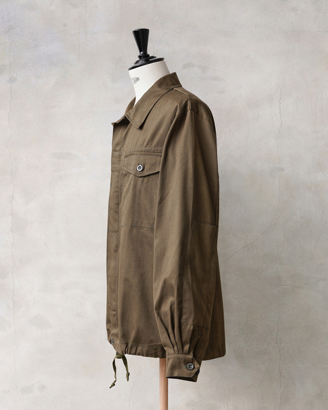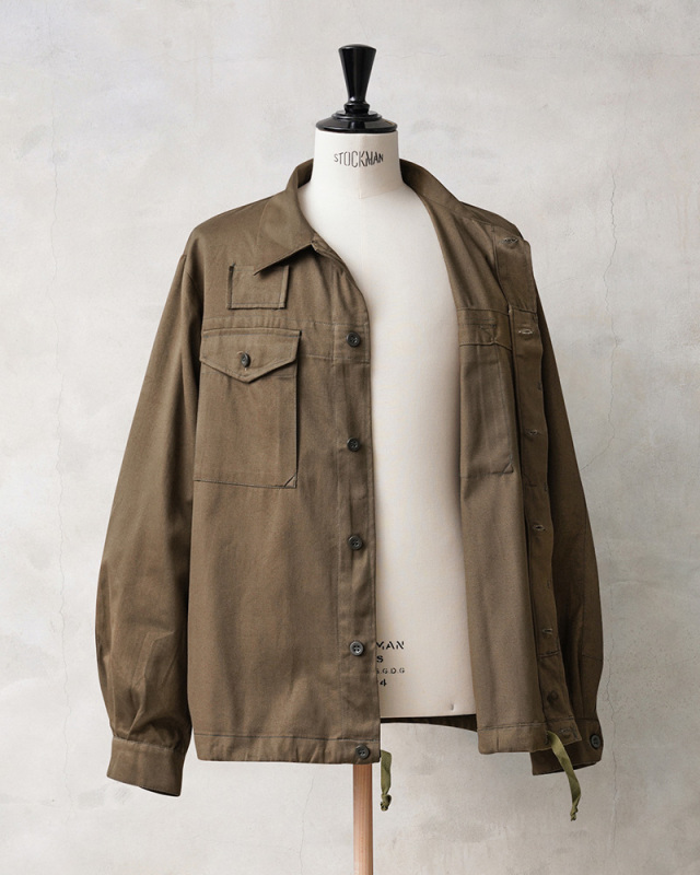 | 商品説明 | 実物 新品 デッドストック チェコ軍 フライフロント ワークシャツのご紹介です。 前立てが2重のフライフロント(比翼仕立て)で中心部分4つのボタンが表から見えないようにしたデザインが風の侵入を防ぐなどの役割を果たす特徴的な1枚です。 フロント左右のポケットは同じ形状ですが、左胸のフラップポケットはセンターで分割されたデザインです。右胸のフラップポケット上部には幅広のループが備え付けられており、デザインのアクセントになっています。 肘部分はエルボーパッチで補強されており、裾はコードで絞ることが可能でシルエットに変化を持たせることができます。オリーブが少し混ざったライトブラウンといった印象のカラーはヴィンテージ感漂う雰囲気。 ジャケット感覚でも着ていただけるデザインですので様々な季節で使えるおすすめのユーロミリタリーです! |