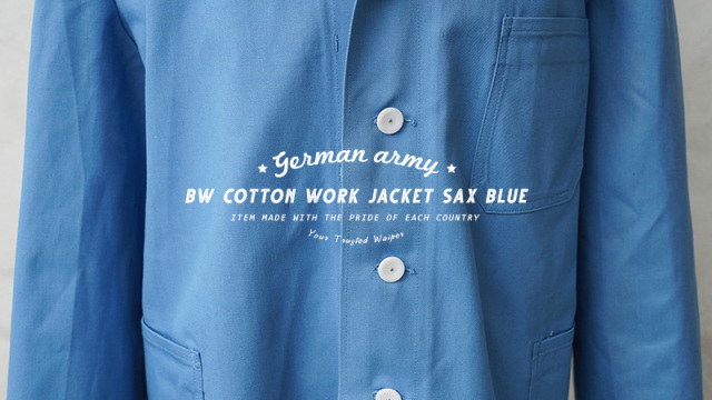 | 商品説明 | 実物 新品 デッドストック ドイツ軍 BW サックスブルー コットン ワークジャケットのご紹介です。 ドイツ軍実物放出の爽やかなサックスブルーが印象的なドイツ軍ワークジャケットです。 しっかりと織られた味わい深いコットンツイルが使用されたジャケットで、樹脂製のチェンジボタンが使用されており、ホワイトのボタンとサックスブルーのコントラストがすがすがしい気分にしてくれる色目です。 オープンカラーのデザインですが、首元までボタンを閉めることもできますので、気分で着まわしできるデザインもポイント。袖口はボタンなしの筒袖なので、ロールアップして着用しても雰囲気が出ます。胸とウエスト部分の3つのパッチポケットがワークジャケットの王道スタイルです。 張りのあるコットン生地が使用されていますので、着込むほどに風合いの変化も楽しめる素材感と、ユーロワークの魅力が詰まった使いやすいおすすめのワークジャケットです! |