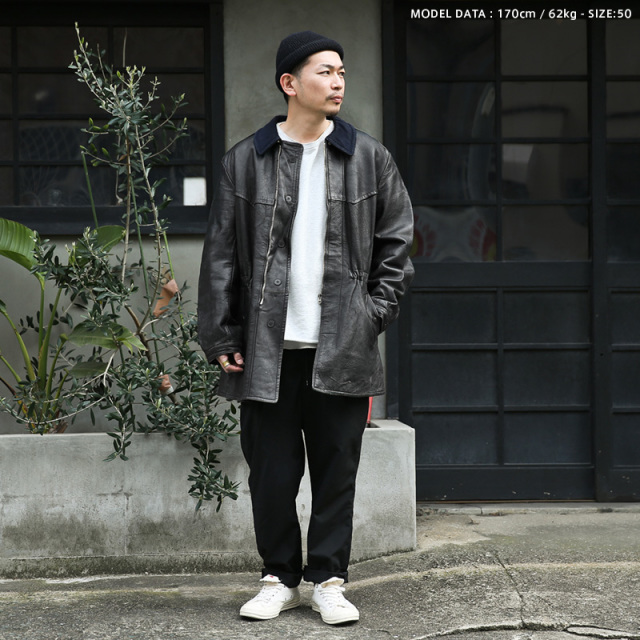 | 商品説明 | 実物 USED スウェーデン軍 1940-1950’s ゴートスキンレザー カーコートのご紹介です。 1940~1950年代頃にスウェーデン軍にて採用されていたレザーカーコートになります。M-90やM-59、希少なモーターサイクルジャケットと、ファッション性の高さも相まって、近年非常に人気がある名作目白押しのスウェーデンミリタリー。こちらは、その中でもあまりお目にかかれないレアな一着ではないでしょうか。 シボ感が特徴で重厚感があり耐久性の高いゴートスキンレザーを使用。両肩にはエポレットと武骨な仕様に感じられますが、襟元のメルトンがやわらかな雰囲気をプラス。そのコントラストが本当に絶妙で、「あー、シャレてんな~」と思わずうっとりする一着です。レザーはあまりという方でも、使いやすいのではないでしょうか。これはホントに名作です。 フロントはジッパー開閉で内側にはボタン留めの風除け付き。両サイドに配置されたスナップクロージャー付きのポケットは容量があり使い勝手も◎。袖口はスナップボタンの付け替え、ウエストはドローコードでそれぞれ調整可能です。 全体的に多少の使用感や汚れ、擦れ、ジッパーを交換した形跡などが見られますが、USED品でこの年代のレザーとしては極上のコンディションと言えるのではないでしょうか。とにかく非常に雰囲気がいいです。表情が異なり、それぞれが希少な1点モノ。ヴィンテージミリタリーの魅力、深みと味わいを存分にお楽しみいただけるスペシャルアイテムです。 |