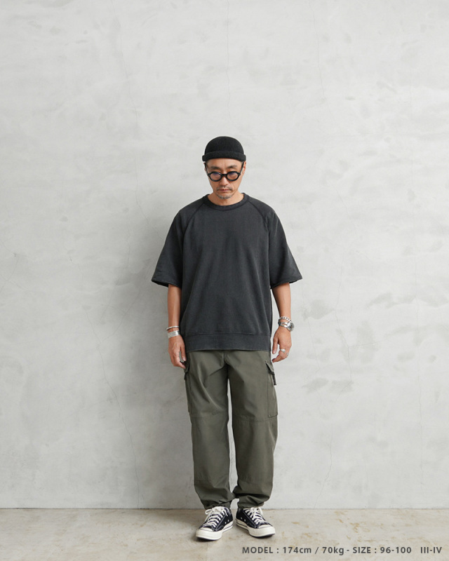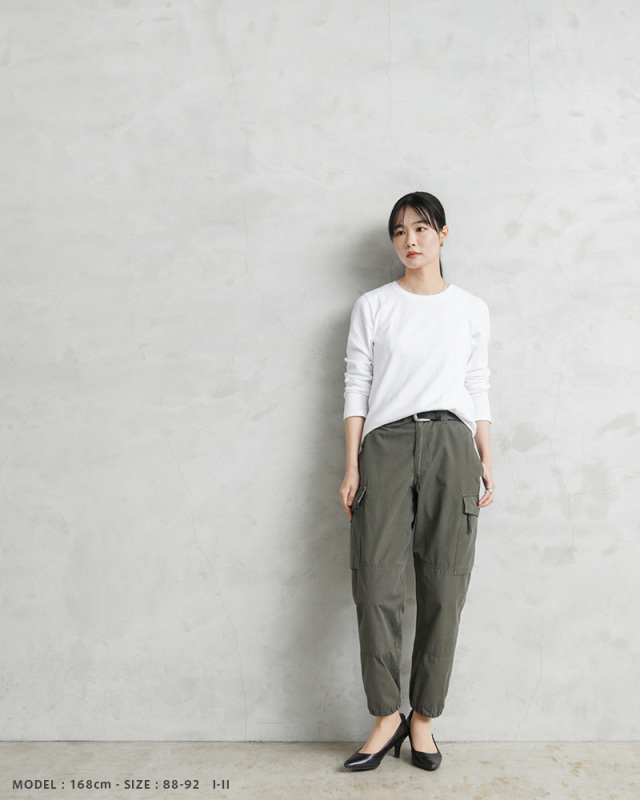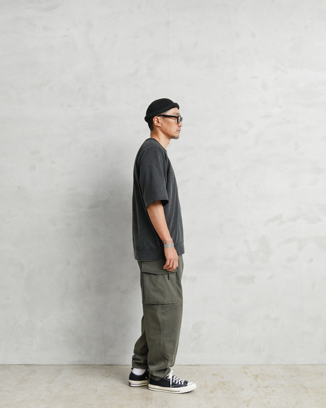 比較的薄い素材なので夏でもはきやすいカーゴパンツではないでしょうか。 ユーズド品だったのでリペアしてありますがそれが自分的にはいい感じでした。 |