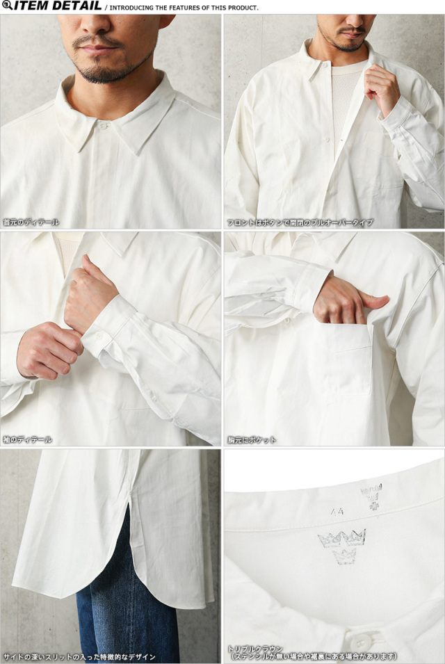 | 商品説明 | 実物 新品 デッドストック スウェーデン軍 ヴィンテージ グランパシャツのご紹介です。 放出されること自体が非常に珍しいヴィンテージのスウェーデン軍グランパシャツが入荷しました! スウェーデン軍で医療用として使用されていたシャツで、ドライな質感も魅力なプルオーバータイプです。 着丈が長くゆったりとしたシルエットで、胸のボタンを外してラフに着用していただくのもおすすめです。 リネンにも近い平織りのコットンが使用されていますので着るほどに経年変化を楽しむことができ、シンプルなデザインの中に、サイドの深いスリットの入った特徴的なデザインなどヴィンテージシャツらしいディテールがスマートで新鮮な印象を与えてくれます。 スウェーデン軍の特徴とも言えるトリプルクラウンのステンシルにもレッドやブラックなど様々なカラーが用いられており、本物のヴィンテージならではの雰囲気の良さが魅力の希少価値の高いデッドストック品です。 |