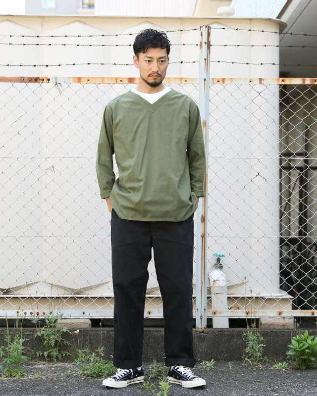 | 商品説明 | 実物 新品 デッドストック ロシア軍 80s Vネック スリーピングシャツ OD染め のご紹介です。 1980年代のロシア軍放出のスリーピングシャツです。 スリーピングシャツの中でもロシア軍のものは特に人気があり、こちらはあまり見かけないVネックデザインです。 元々ホワイトだった物を染め職人に丁寧にOD染めしていただきました。 ODにすることでさらに着こなし易くなりました! 肌触りがよく着心地の軽いコットン生地で、リネンのような粗めの織りで非常に味のある生地感です。 キレイめからカジュアルまで、幅広いスタイルにマッチしてくれる一枚。 男女問わずお使いいただけるアイテムです。 |