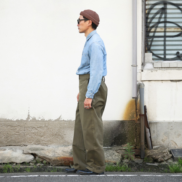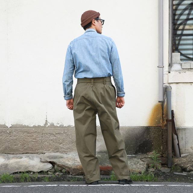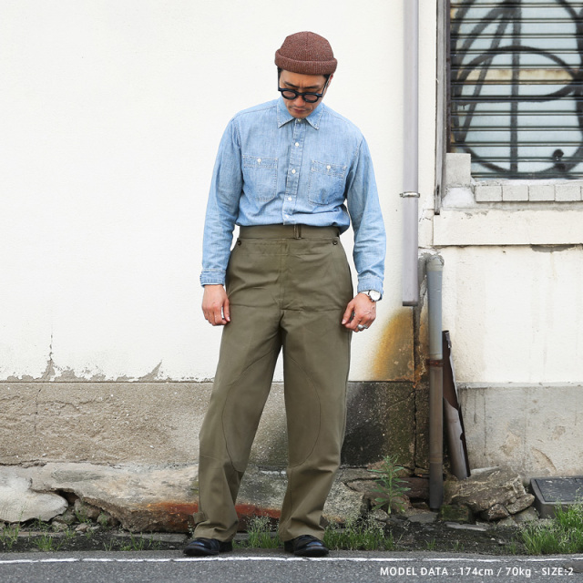 | 商品説明 | 実物 新品 フランス軍 1940-50’s M-38 ヴィンテージ モーターサイクルパンツ ダブルニーモデルのご紹介です。 1940年代から50年代にかけてフランス軍のバイク部隊で使用されていたモーターサイクルパンツになります。探されている方も多く、希少価値の高い一本。二重フロントで前あて付きのダブルニーモデルは滅多にお目にかかることができないスーパーレアな逸品。デッドストックでのご紹介は奇跡に近いのではないでしょうか。 数あるミリタリーパンツの中でも、かなり独特な雰囲気を醸し出すアイテム。おそらくリネン混と思われる重厚感のある生地感でかなり存在感があります。オーバーパンツのためサイドポケットは貫通式。こちらは裏から生地を張ったり、スパッツや薄手のショーツと合わせる方も多いようです。前あて裏にはパッチポケット付き。ウエストはグルカパンツのようにベルトで締めるデザインになっており、タックインでの着用も大変オススメ。裾部分はストラップで絞れる仕様になっており、ワイドなシルエットはロールアップにも向いています。 ボタンなどディティールの個体差、長期保管による生地の退色や多少の汚れ、金属部品からのサビなどがございますが、前述致しました通りデッドストックでのご紹介はかなり希少です。一本一本表情が異なり、それぞれが希少な1点モノ。ヴィンテージミリタリーの魅力、深みと味わいを存分にお楽しみいただけるスペシャルアイテムです。 |