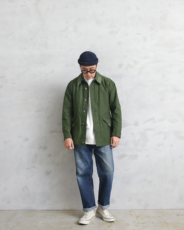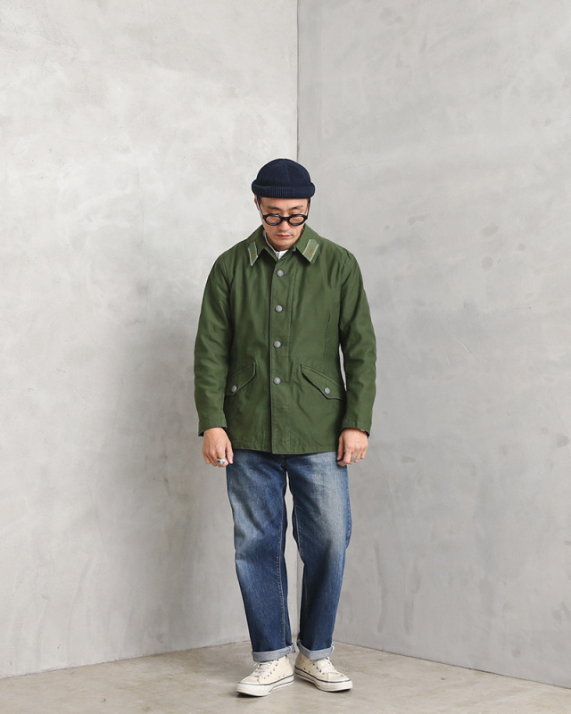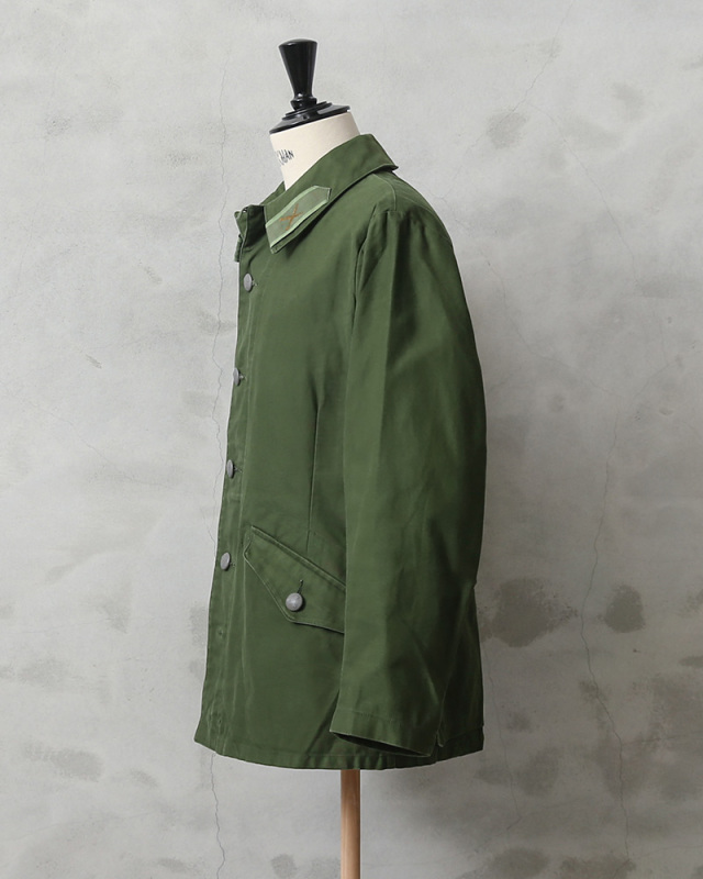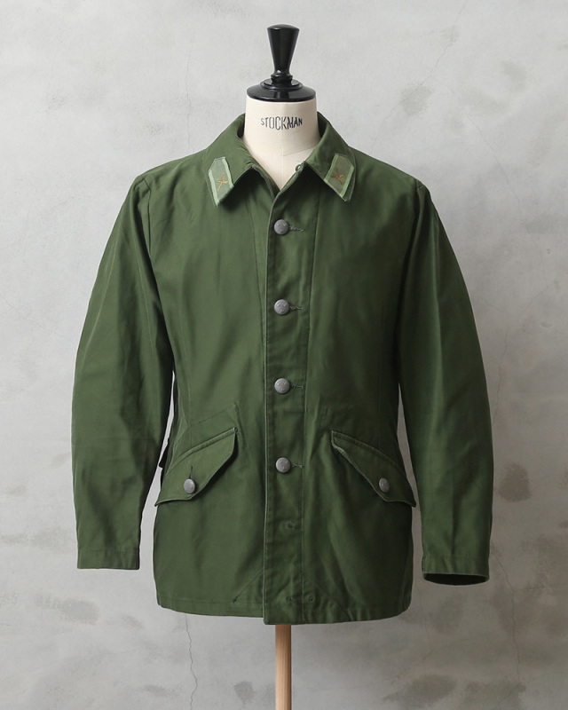 | 商品説明 | 実物 USED スウェーデン軍 M-59 フィールドジャケット のご紹介です。 ユーロミリタリーでメインストリームになりつつあろうかと言うスウェーデン軍ですが、その中でも一際クールで使い勝手が良いのが、このM-59 フィールドジャケットです。 スウェーデン陸軍にて1959年に制式採用され、80年代頃まで製造されていました。 後ろのウエストまわりに設けられた大ぶりのフラップポケットや、肘の摩耗を防ぐためのあて布、絞りこまれたウエストなど、野戦用ジャケットとしての機能性だけでなく、どこかハンティングジャケットのような雰囲気です! 後ろ裾の内側には布製のタブが収納されており、脚の間を通して前裾内側のボタンで留めることでジャケットが捲れ上がるのを防ぐ役割を担っていたようです。 他国とは違う特殊なディテールなどが特徴的なフィールドジャケットでユーロミリタリーを代表するアイテムの一つです。 ボタンにはスウェーデン軍のマークでもあるトリプルクラウンが使われています。 重厚な質感のコットンツイルで、USEDならでわの素晴らしい雰囲気が出ています。 無駄のないミニマルなデザインと、軍モノらしからぬ綺麗なシルエットで人気の一着です。 ただ現状全く手に入らなくなってきました。 見つけたら買いのアイテムだと思います! ディティール ・フロントはボタンで開閉 ・フロントサイドにフラップポケット×2 ・後ろウエスト周りにフラップポケット×2 ・インナーポケット×2 |