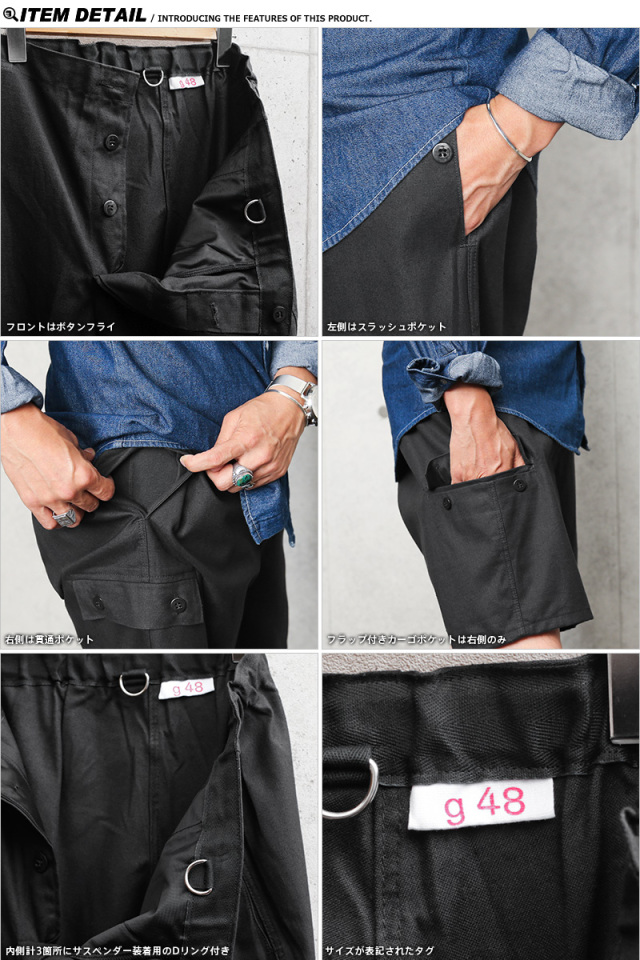 使いやすいデザインと素材に加えサスペンダーも吊れて気に入りました。
