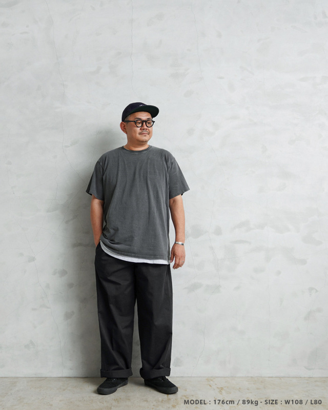 167cm83kgでW100をオーバーサイズで着ています。ウエストに紐通せるので、ガンガン絞っていいシルエットです。
