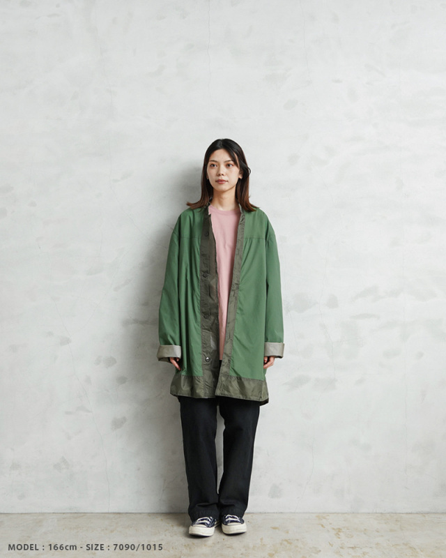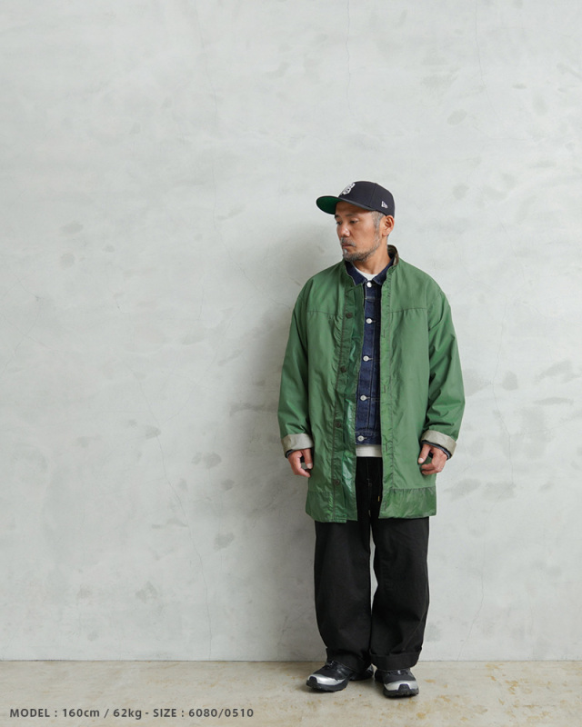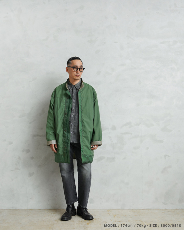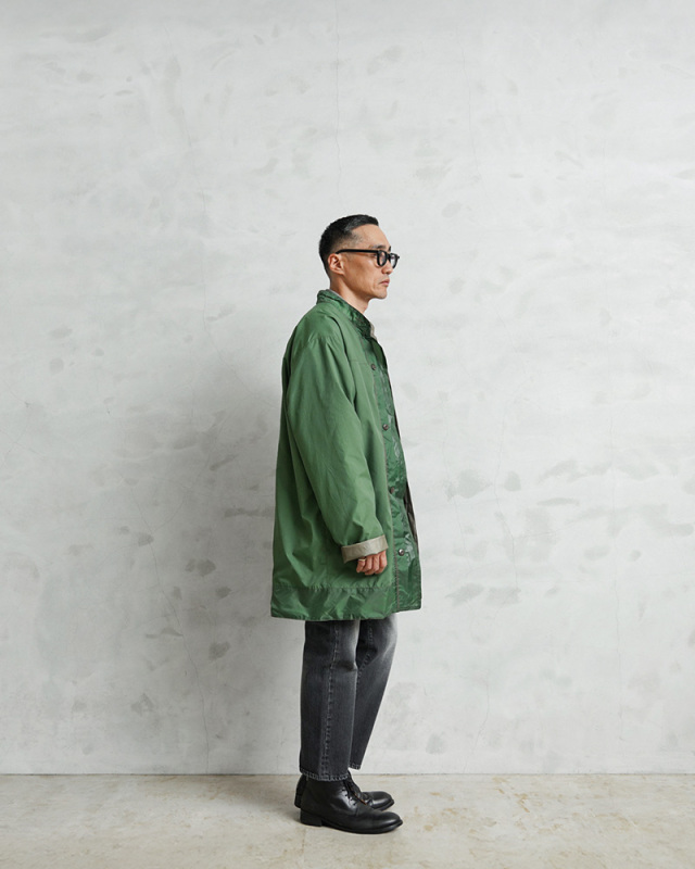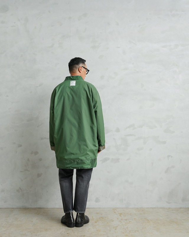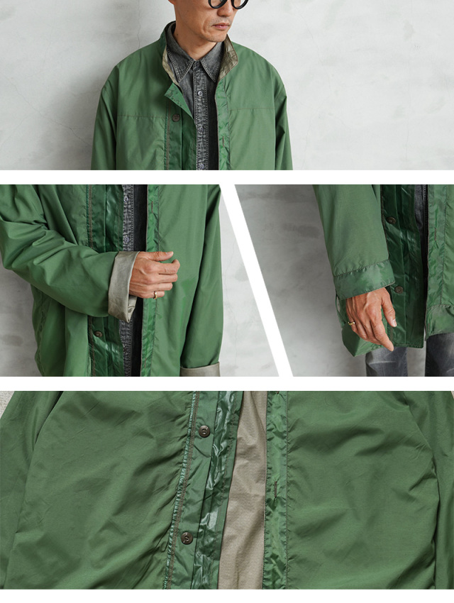 グリーンの色もきれい ボタンの位置を付け替えて前を留められるように改良 インサイドにポケットも付けたので完璧 小さくなるので持ち運びにも便利そう 良きものです |