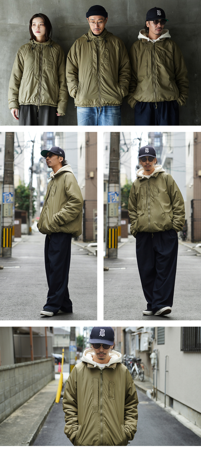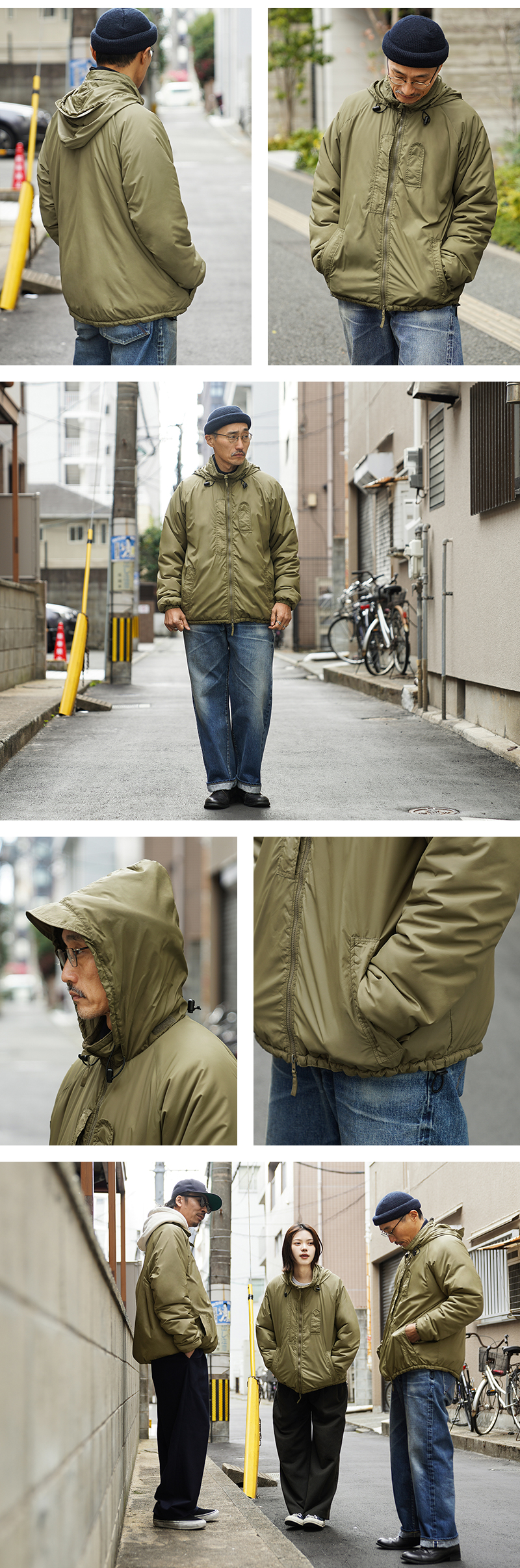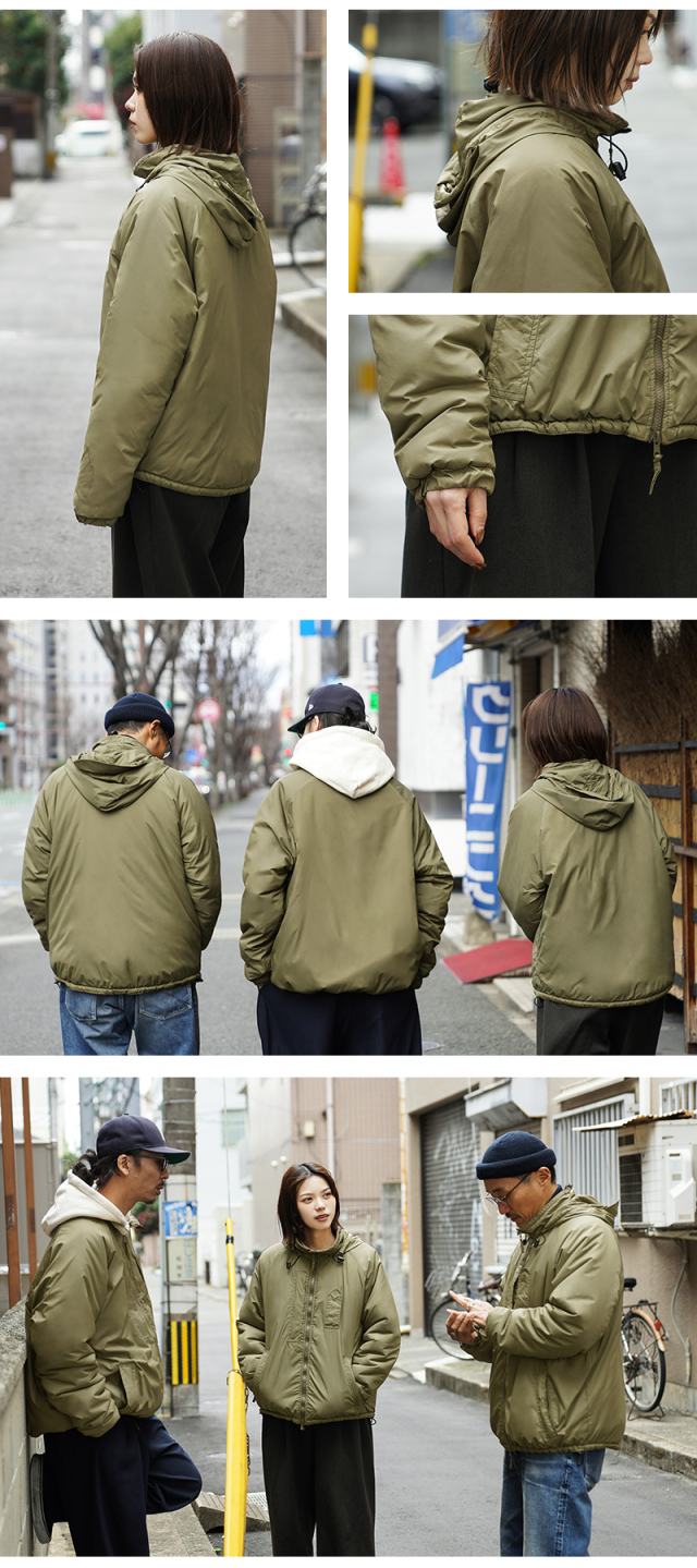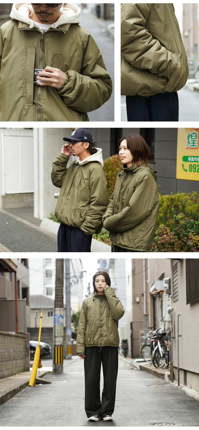 イギリス軍独自のレイヤリングシステム、PCS(Personal Clothing System)の中綿入りのジャケットになります。素材には撥水性の高いマイクロリップストップナイロンを採用し、軽量で保温性に優れたジャケットです。スタンドカラーデザインで、襟の内側はキメの細かい肌触りの良いフリース生地により保温性を高めています。襟にはフードが収納されており、フードや裾のサイドにはドローコードで調節可能なデザインです。