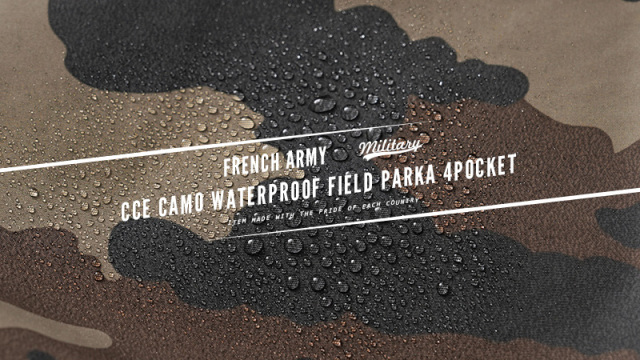 | 商品説明 | 実物 新品 デッドストック フランス軍 CCE CAMO WATERPROOF フィールドパーカ 4ポケットのご紹介です。 フランス軍の透湿防水タイプの機能性に優れたフィールドパーカが入荷しました。 フランス軍の代表的な「CCE CAMO」は米軍のウッドランドカモを落ち着きのあるカラーに仕上げた印象の迷彩柄です。シェルは撥水素材で裏地は内側からの水蒸気を逃し、雨などの水滴は通さない事でドライな状態を保ち、風を通さないことで保温性も向上させる高機能素材の透湿性防水生地を使用しています。 縫製部分は裏側からシームテープ処理が施されており、雪、雨、風の侵入をシャットアウトします。 大きなスタンドカラーに付属したフードは折りたたんで襟に収納可能です。ブリム付きのフードがデザイン的にも良く、フードに付属するストラップとドローコードで調整し、風や雨から保護できます。 フロントはファスナーとスナップボタンで開閉する仕様で、前立てが二重になることで、防風性に優れたデザインです。胸部分にファスナー開閉のポケットが2箇所、ウエスト部分にファスナー開閉のフラップポケットが2箇所備わっています。脇下には素早い体温調節が可能なベンチレーションに袖の肘側は二重に補強されており、袖口はベルクロで調節可能な機能性も素晴らしいジャケットです。 有名な米軍の“ECWCS”のフランス版とも言えるアイテムの希少なデッドストックです! |