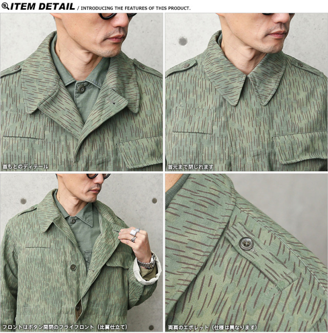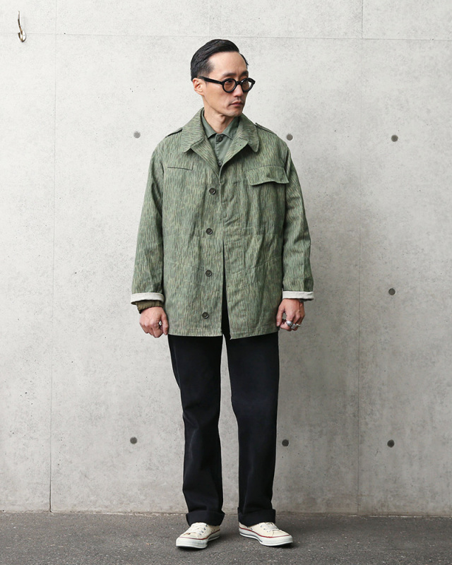 | 商品説明 | 実物 USED チェコ軍 M-60 レインドロップカモ フィールドジャケットのご紹介です。 チェコ軍からの実物放出で1960~80年代に採用されていたフィールドジャケットが入荷しました。 なんといっても目を引く、この迷彩はレインドロップカモと呼ばれ、雨の様に見えるのでこの名が付いたそうです!一見派手に見える迷彩ですが、着ると落ち着いた雰囲気ですごく合わせやすいです。シルエットも綺麗でしっかりとしたコットン素材が使用されています。 本国ではJehlici/Oblaky(ジェリシ「針」/オブラキー「雲」)とも呼ばれ、レインドロップカモが「針」、アンダープリントのまだら模様が「雲」を表しています。アンダープリントには個体差がありますが、特定の赤外線表示装置を使用して表示すると、アンダープリントがより目立つデザインになっています。 ジャケットには左胸のフラップポケット、バックポケット、2つのインナーポケットが備わっていますので、収納性にも優れています。 モデル着用の画像の様に袖をロールアップするのも雰囲気が変わりおすすめです! シルエット・デザイン・実用性を兼ね備えたおすすめの名作です! |