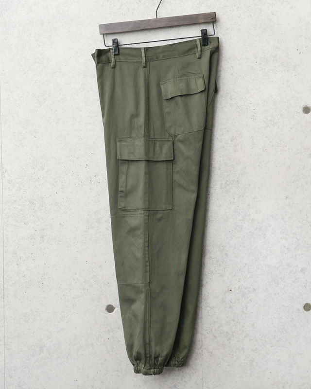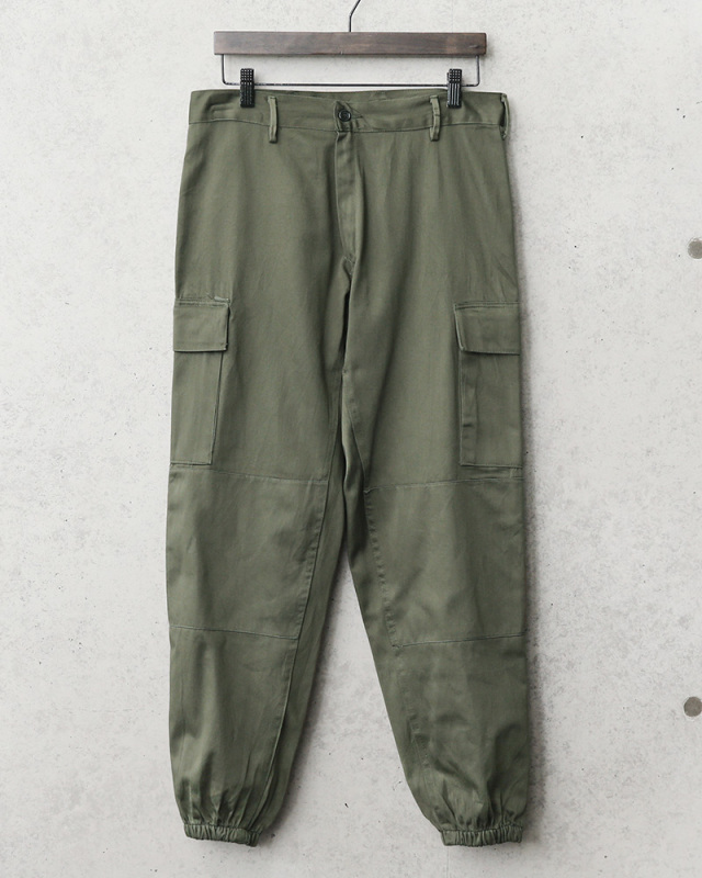 | 商品説明 | 実物 USED イタリア軍 ダブルニー ZIP カーゴパンツのご紹介です。 イタリア陸軍(ESERCITO ITALIANO)において採用、支給されていたカーゴパンツです。 イタリア軍のコンバットパンツやパラシュートパンツなどに似たデザインですが、カーゴポケットが付属しており、素材にはコットンが採用された軽い着用感のカーゴパンツです。 膝の部分には同素材の生地が2重に補強されたデザインのダブルニー仕様。カーゴポケットにはフラップの内側にボタン留めとZIP付きのデザインですのでボタンを外すのが面倒な場合でもZIPで素早く開閉が行え、収納物の落下防止に役立つ便利な作りになっています。 9分丈程度の長さで、裾にはゴムが入っていますのでブーツ、スニーカー、サンダルなど合わせやすく、流石イタリアと言えるデザイン性の高さと、イタリア独特の個性が強く表れているパンツです。 こちらのパンツが入荷するのは当店でも初めてで、入手困難なアイテムであることはもちろん、人気の高いイタリア陸軍の洗練されたシルエット、デザイン、希少性のどれをとっても申し分ないカーゴパンツです。 |
