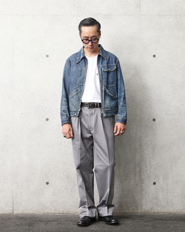 洗う前はキレイめな生地感ですが、洗い後はかなり毛羽立ちや凹凸感が出てカジュアルなパンツになりますヨ