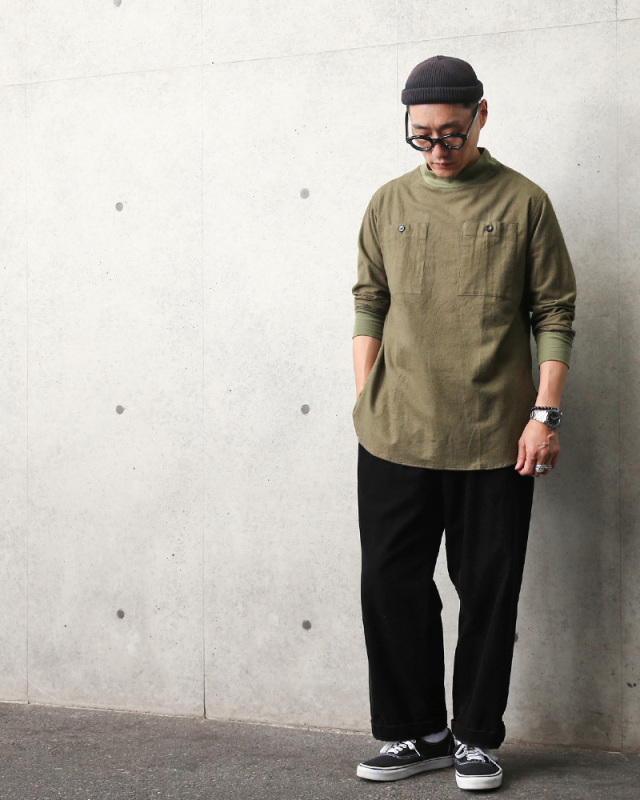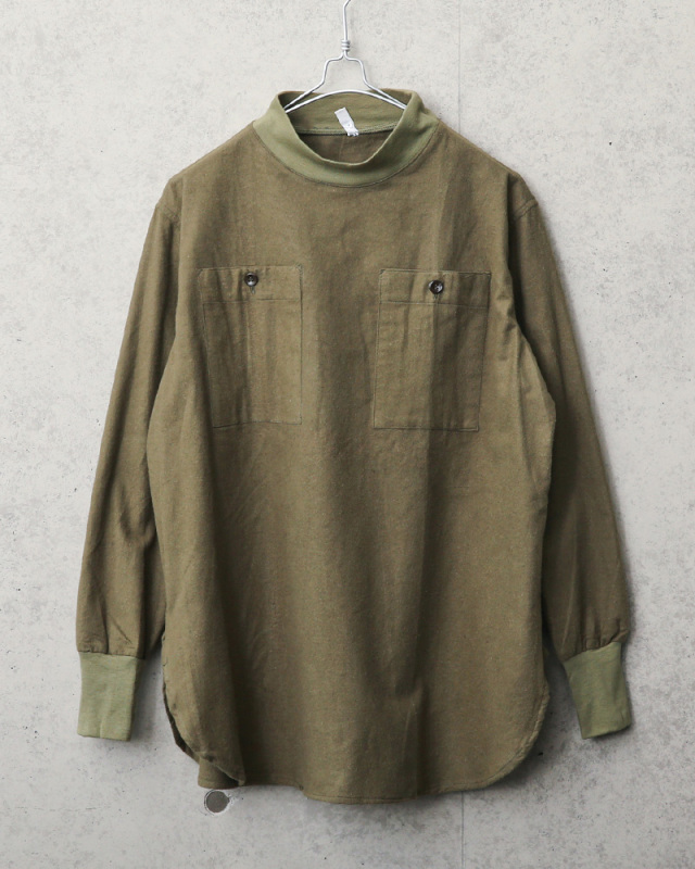 1970年~1980年代にかけてハンガリー軍で採用されていた、フランネル素材のプルオーバー モックネックシャツが入荷しました。 おそらく本来はスリーピングシャツとして使われていたのだと推測されます。 薄手のコットンフランネル素材で、フロントに胸ポケット2つ、首、袖先がリブ編みの素材になったデザイン性がすごく良く、いいルックスです! 裾はサイドにマチがあるラウンドタイプの仕様です。 1枚で着ても、インナーに持ってきてもいいですし、かなり使えるアイテムだと思います。 放出自体希少だと思いますし、中々ここまで良いデザインの物は出てこないです! |