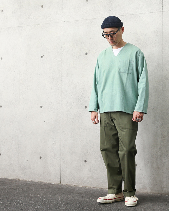 | 商品説明 | 実物 USED ハンガリー軍 リネン Vネックスリーピングシャツ グリーンのご紹介です。 ハンガリー軍実物放出のスリーピングシャツです。 Vネックの首元に、緩いフワッとしたシルエットが特徴のスリーピングシャツです。 左胸にポケットが一つのシンプルな仕様です。 リネンの涼しげな素材も良く、サラッと着こなせます! お勧めのミリタリーアイテムです! |