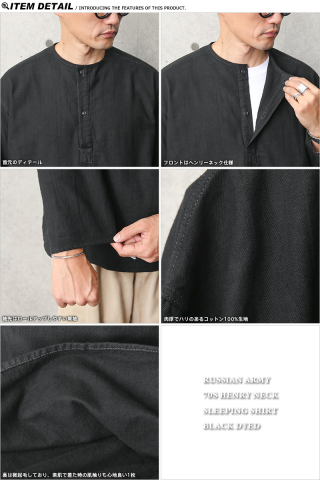 | 商品名 | 実物 新品 デッドストック ロシア軍 70s ヘンリーネック スリーピングシャツ BLACK染め | ||||||||||||||||||||||||||||||||||||||||||||||||||||||||||||||||||||||