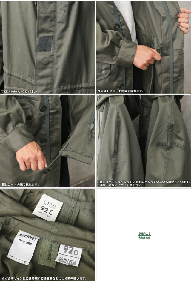 ※製造された年代により、生地の色合いが多少異なる場合がございます。 ※左袖にステンシルが入っていたり、入っていなかったりします。 ※長期保管による多少の汚れ、ファスナーやボタンにサビがある場合がございます。 |