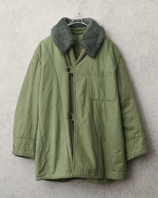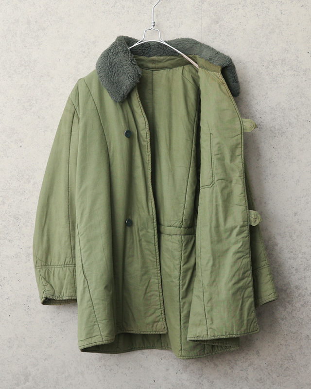 ハンガリー軍実物放出のコットン製のキルティングライナーです。 フィールドコートに本来装着するライナーです。 まるで“布団”の様なふかふかとした中綿入りコットン生地で、良い意味でこういった仕様の洋服は現代では作らないのではないでしょうか! ライナーですが襟元にはボア付と珍しいディテールで、中綿入りのキルティングにフロントはボタン付なのでアウターとして着用頂けます。 1960年代から1980年代にかけて採用されていた希少な物です。 |