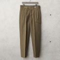 | 商品説明 | 実物 新品 デッドストック イギリス軍 P1949 PATTERN BATTLE DRESS ウール トラウザーズのご紹介です。 制式名称:TROUSERS Battle Dress 1949 Pattern 独創的な美しいデザインに肉厚なウール素材が使用されたまさにヴィンテージと呼べるP1949 PATTERN BATTLE DRESS(バトルドレス)ウール トラウザーズが数本のみ入荷しました! 左フロントからサイドにかけてのアシンメトリーなデザインのマップポケットやフックで開閉する特徴的なフロントのディテール、イギリス軍らしさを感じる幅広なボタン開閉できるベルトループにウエストサイドのアジャスターやサスペンダーボタン、さらにはイギリスの官有物である事を示す矢印形のマークである「ブロードアロー」が記されたステンシルやラベルなど、どこを取ってもスペシャルなヴィンテージトラウザーズです! このアイテム特有のディテールやデザインは多くのブランドにサンプリングされていることも納得できますし、SIZE 9でウエスト約82cmというのも理想的で希少なウエストサイズになっています。 ツータックで程よくゆとりのあるヒップ周りと裾にかけてゆるやかにテーパードしたシルエットも良く、ミリタリー好きでは無い方にも魅力的なアイテムです。 ミリタリーとは思えない洗練されたパンツで、これを逃すと次は無い希少サイズのユーロヴィンテージです! |