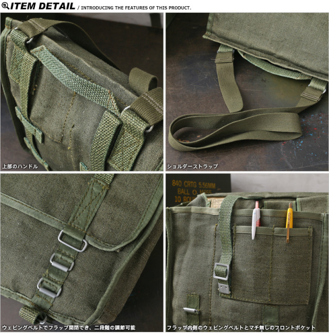 | 商品説明 | 実物 新品 デッドストック ポーランド軍 ブレッドバッグ / ショルダーバッグのご紹介です。 ポーランド軍で実際に使用されていた、ショルダーストラップ付のブレッドバッグ。 ブレッドバッグとは、元々兵士が身の回りの日常品を入れておくためのバッグとして使われていたもので、内部には仕切りと多数のポケットがり、コンパクトでスッキリした見た目に反して非常に収納力があります。 素材は目が粗くザラザラとした肌触りが特徴的なキャンバス地を使用。バッグの上部には持ち手が付いており、ショルダーストラップもあるので、手提げと斜め掛けの2WAYで使用可能です。 丈夫かつシンプルなデザインはデイリーに取り入れたくなるアイテムです。 |