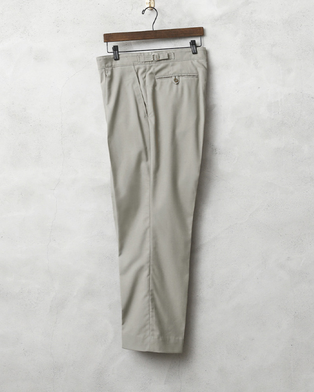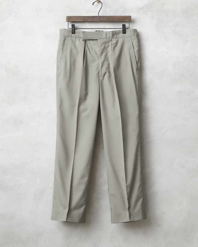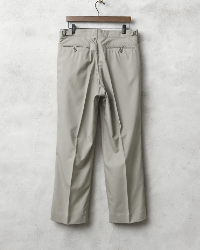 | 商品説明 | 実物 USED イギリス軍 BA・RAF Dress トラウザーズ / オフィサーパンツのご紹介です。 イギリス軍より放出された、オフィサーパンツが入荷しました。 イギリス陸軍(BA=British Army)では温暖な気候で着用される制服として、イギリス空軍(RAF=Royal Air Force)では士官および准士官が着用するサービスドレス(式典用の制服)として着用されています。 フロントは使いやすいジッパーフライを採用。肌触りが良く涼しいポリエステル×ビスコース(レーヨン)混合の生地を使用しています。ウエスト周りにはアジャスターとサスペンダーを取り付ける為のボタンが設けられています。太すぎず細すぎずの絶妙なシルエットと、落ち着いたストーンカラーがイギリスらしい雰囲気の一本です。 センタープレスの縦ラインが強調されることで足長効果が期待できるほか、独特の美しいシルエットと立体的なフォルムができ、ワンタック仕様で腰回りに程よい余裕を持たせてあり、裾にかけたややテーパードがかったデザインが特徴の綺麗なラインのシルエットです。 左右と後ろにポケットが配置されたオーソドックスなデザインで、キレイめなスタイルからカジュアルまで幅広くこなしてくれるアイテムです。 |