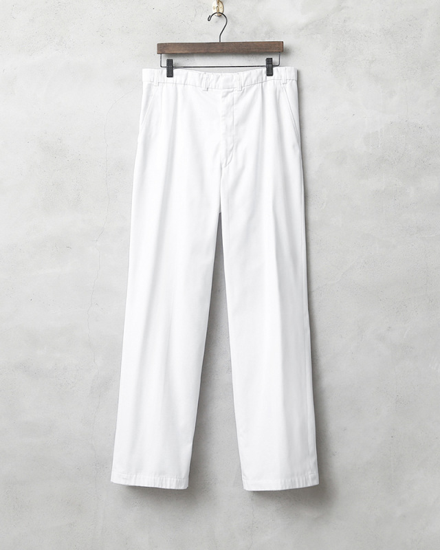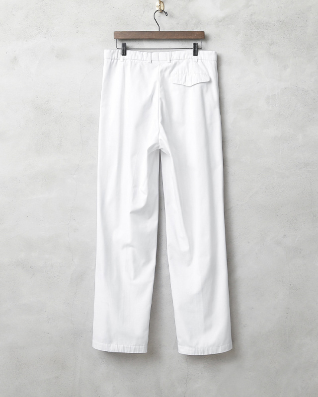 | 商品説明 | 実物 USED ドイツ軍 NAVY ホワイト トラウザーズのご紹介です。 ドイツ海軍で使用されているストレートシルエットのホワイトトラウザーズが入荷しました。 フロントのタックやバックのダーツなどでゆとりのあるストレートシルエットに仕上げられてあり、ワタリとヒップに余裕あるシルエットなのでストレスなく着用していただけます。程よくワイドでストンと落ちるシルエットが絶妙でバランスの良い着こなしができる1本です。 ポリエステル、コットン素材で、ポリエステルのシワになりにくい特性と、コットンの通気性と吸水性に優れている特性が調和し、吸収性が高くシワになりにくく、さらっとした質感と軽量でタフな素材を使用しています。 右側に1箇所のみ備わったポケットもアクセントになっています。レザーシューズやスニーカーとの相性も抜群で、爽やかな印象を与えるのはもちろん、安心感のある落ち着いた雰囲気を演出します。 リラックス感のあるシルエットでホワイトカラーが装いをアップデートしてくれる万能アイテムです。 |