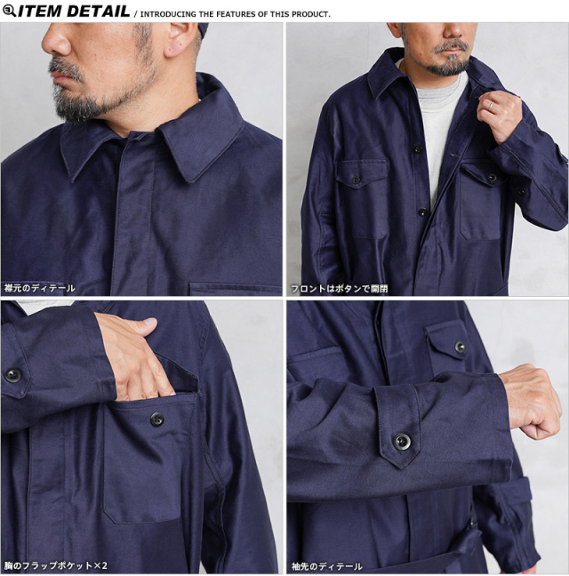 | 商品説明 | 実物 新品 デッドストック イタリア軍 コットンサテン ワーク カバーオールのご紹介です。 イタリア軍から放出された、適度に光沢のあるコットンサテンが使用されたワークカバーオールです。 フロントはボタンで開閉し、比翼仕立てでボタンが表に出ない仕様です。ウエスト部分のサイドポケットは貫通ポケットです。胸には2箇所のフラップポケット、バックルの付属したウエストベルト付きでウエストを絞ることでシルエットに変化を持たせて着用することも可能です。 上半身をウエストに巻きつけて着用することもできます。深みのあるネイビーにサイズ表記のステンシルなどが年代を感じさせる雰囲気。着込むほどに雰囲気の良くなるコットンサテン素材で、ヴィンテージのような風合いの経年変化も楽しめるワークカバーオールです。 |
